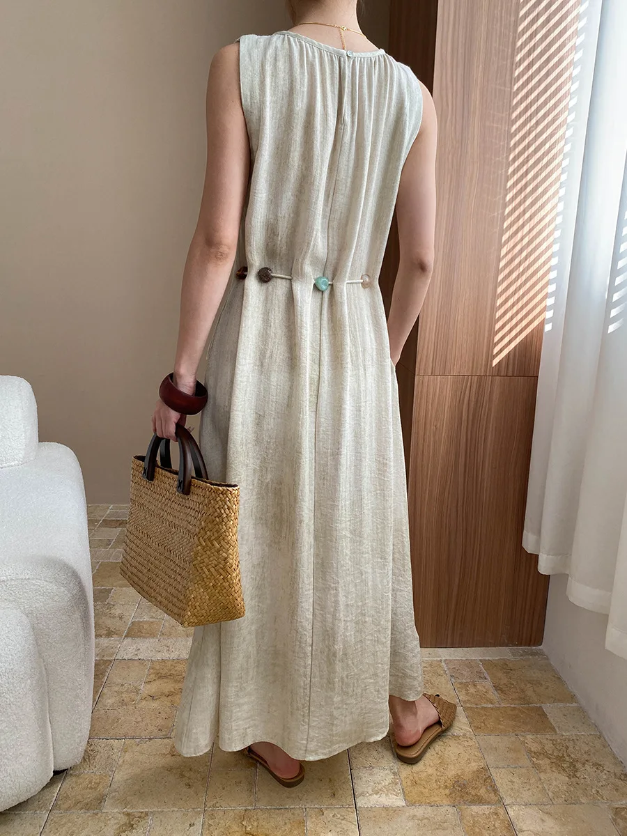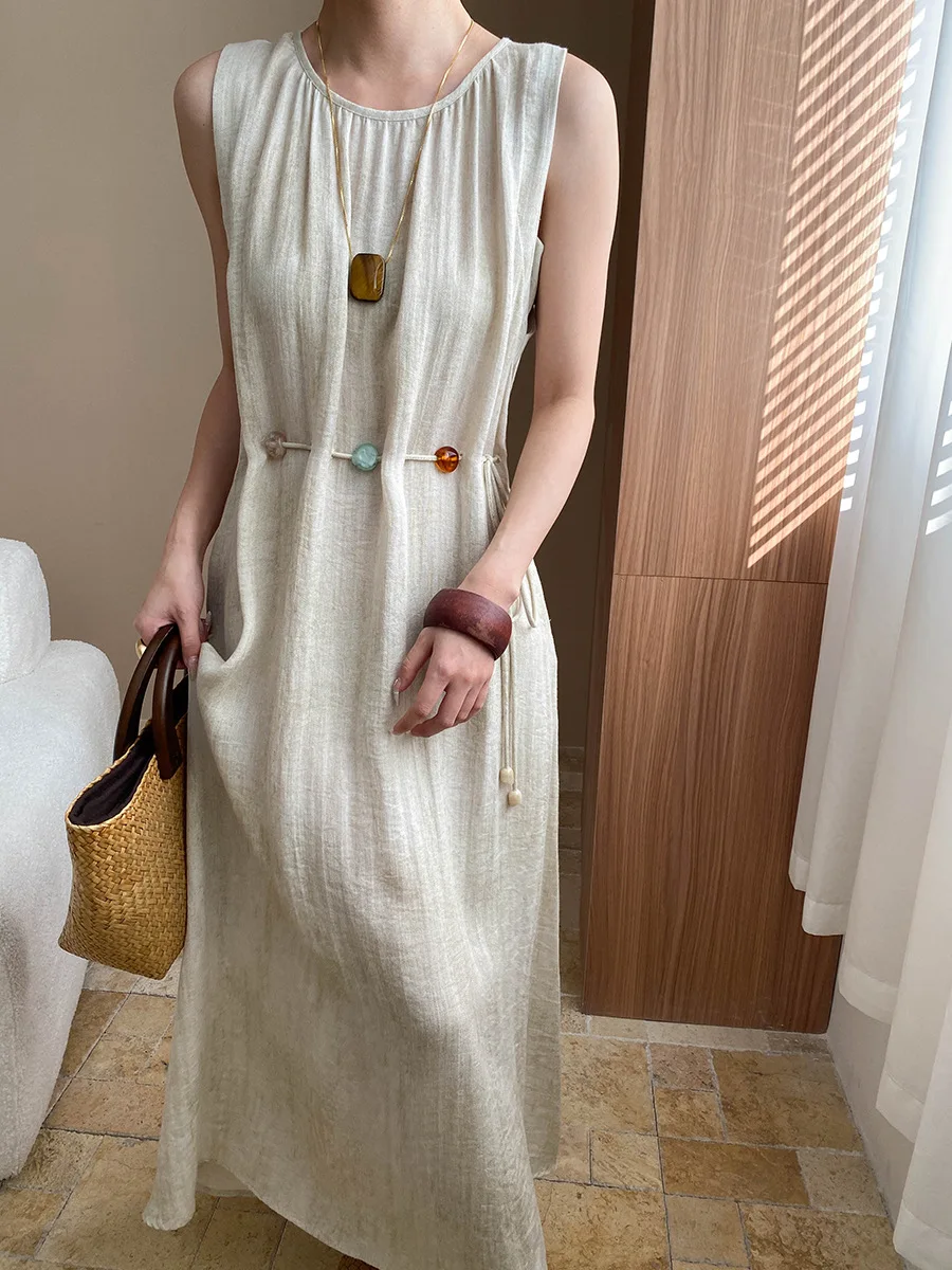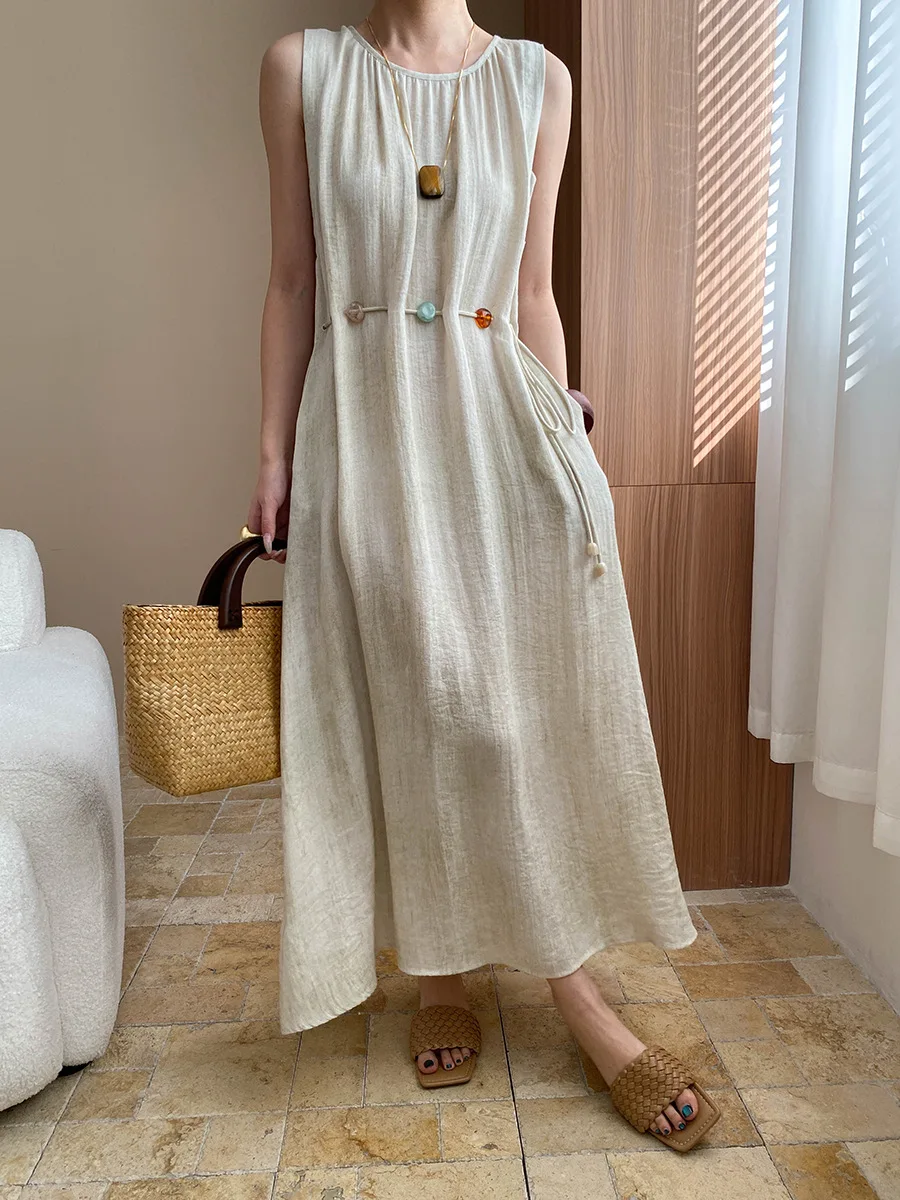 Spring and summer women's casual solid color round neck sleeveless loose dress