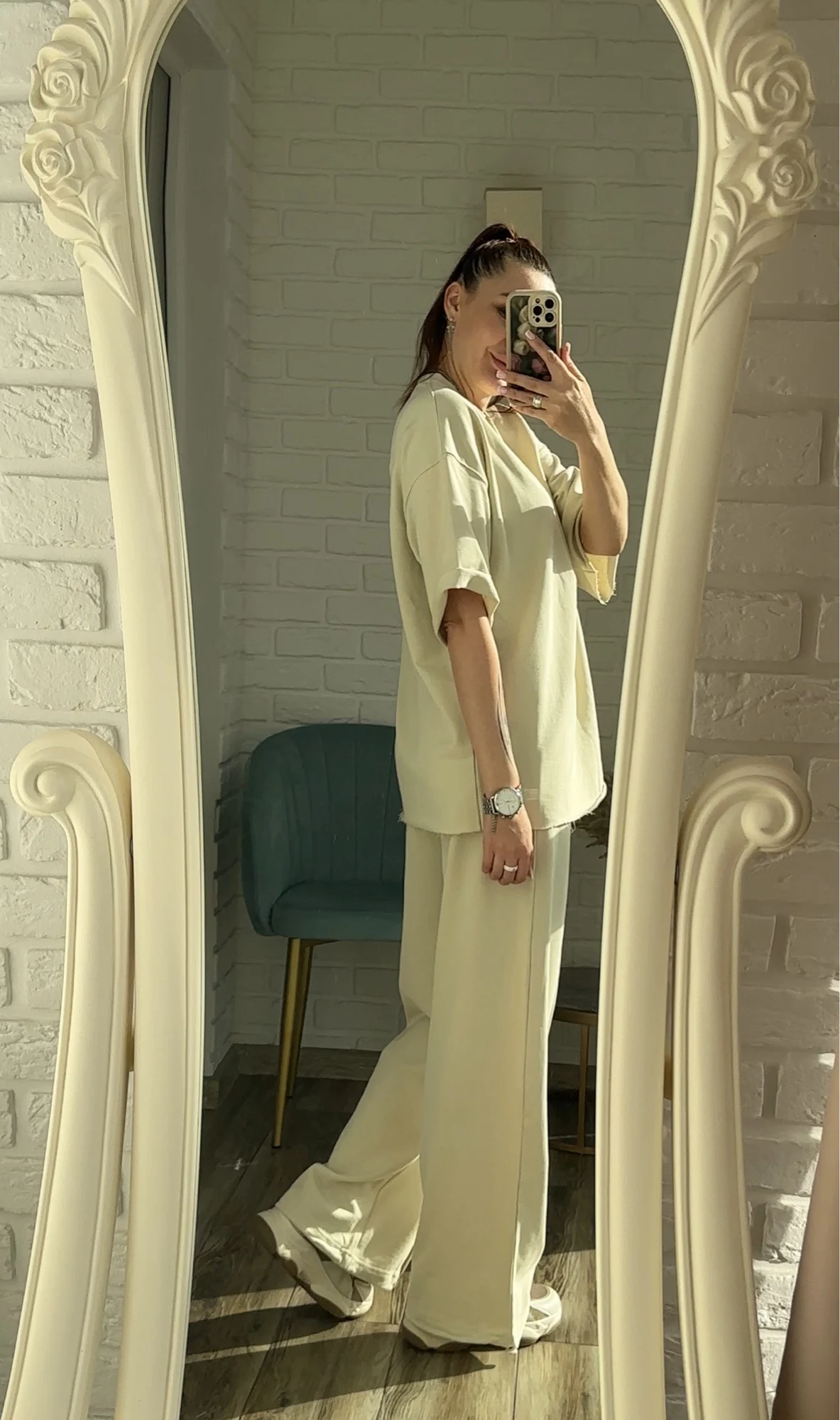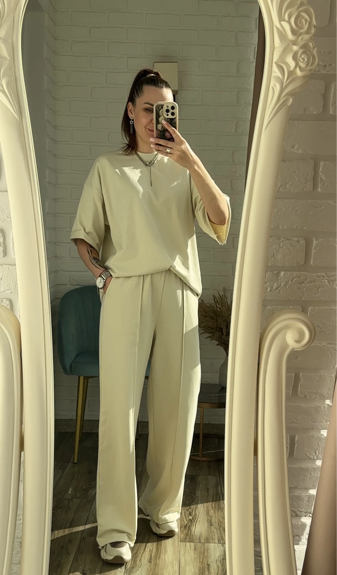 Больше обзоров у меня на канале 🤍 Шикарный костюм на весну и лето. Натуральная ткань, невероятно приятная к телу. На 91-73-101 и рост 173 размер Л сел отлично. Как я люблю оверсайз. Брючки внизу на резинке, можно носить двумя вариантами. Очень рекомендую, бомбезный костюм фабричного качества по цене 🔥🔥🔥