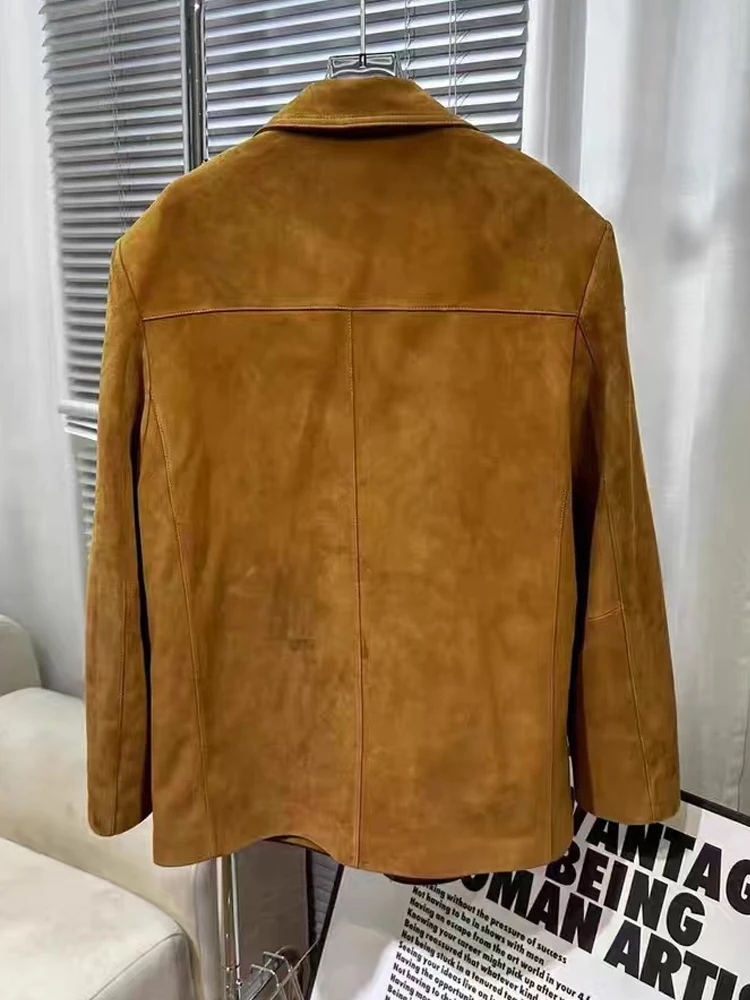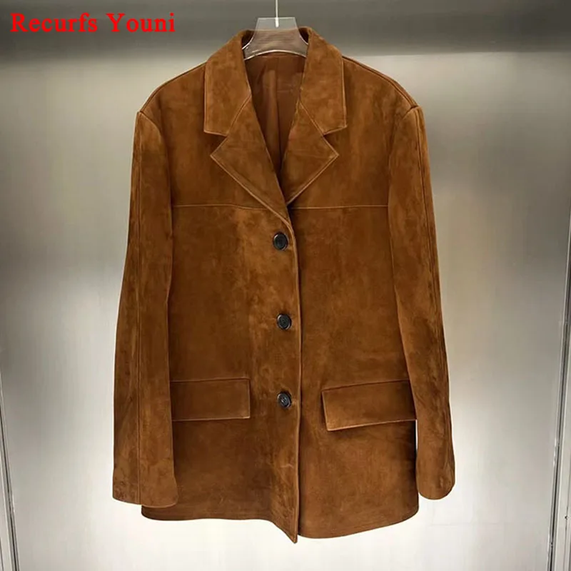 Винтажная коричневая детская замшевая куртка для женщин, новинка 2023 года, свободный кожаный костюм большого размера, блейзер, женское повседневное пальто, уличная одежда