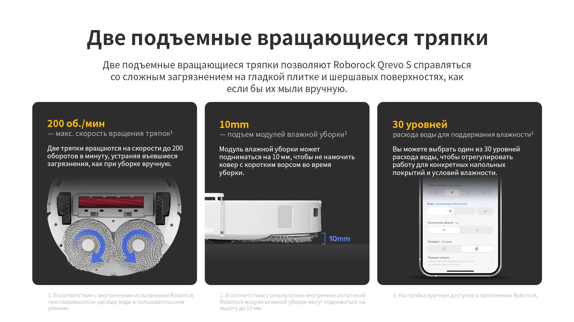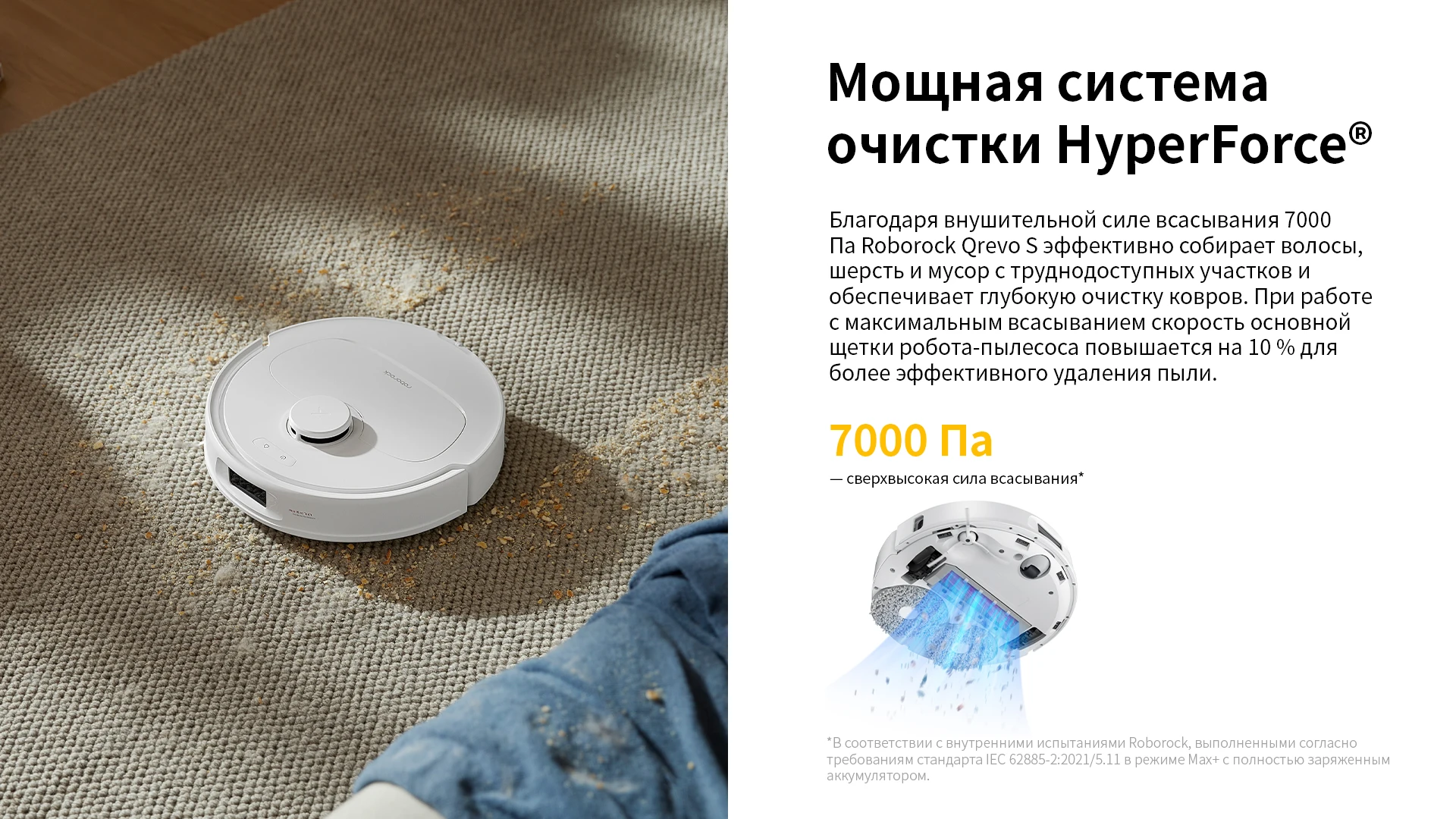 Робот-пылесос Roborock Qrevo S, <500 Вт, беспроводной, влажная уборка, пылесборник