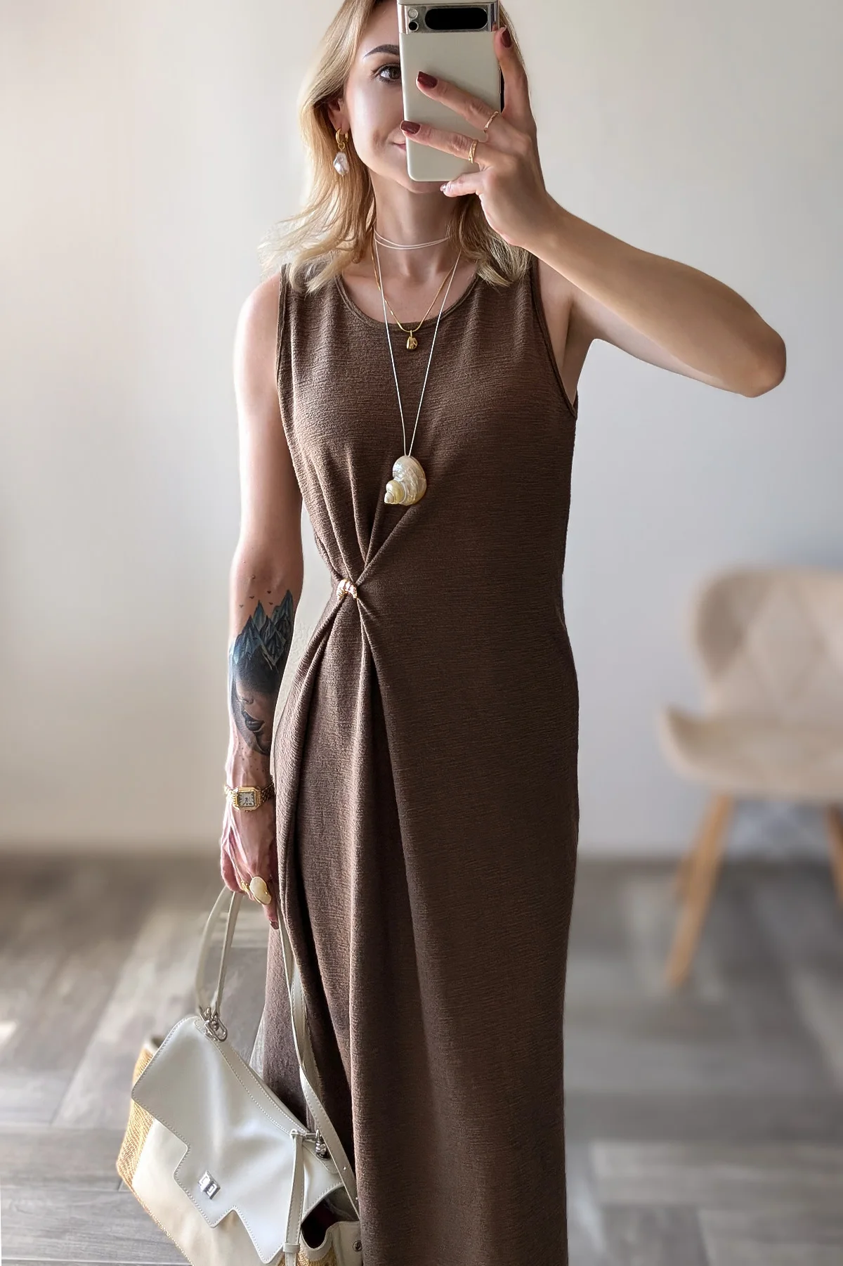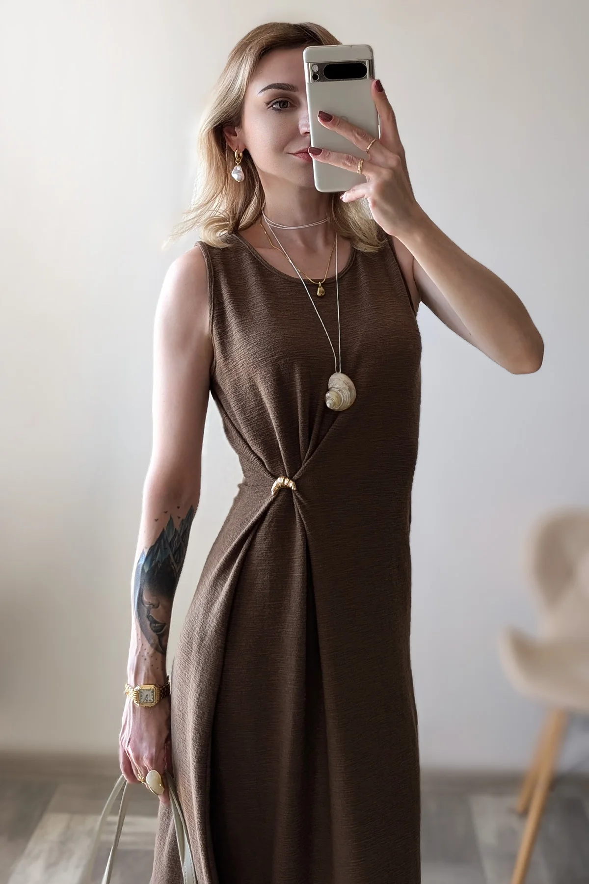 Больше обзоров и находок на МОЁМ KAHAЛE Несмотря на не самые примечательные отзывы, мне это платье довольно сильно понравилось И объясню почему — Во-первых, его можно носить не только летом, оно отменно подойдёт на осень, да и в сочетании с блейзером смотрится прекрасно — Во-вторых, здесь полномерные европейские лекала — В третьих, несмотря на оверсайзовую посадку, благодаря эластичности материала, его можно носить и с поясами, и с платками, и даже драпировать брошами, при этом зацепки не появляются, а боковые швы остаются на месте👌🏻 На свои параметры 86-57-86 см и рост 165 см я взяла платье в размере S На выбор две расцветки, я взяла коричневый Он никак не шоколадный и это отменно видно даже на промо-фото товара Приходит платье с бирками магазина Составник подтверждает наличие хлопка, его здесь 57%, а также 40% пэ и 3% эластана Хоть последнего и меньше всего, материал довольно эластичный и хорошо тянется и подойдёт даже на L Не просвечивает, длина полноценная На девочек выше будет как раз миди, а на мои 165 см - практически макси Пройма довольно широкая, вырез O-образный Скроено отлично и фасон здесь практически прямой Швы ровные, торчащих ниток не было В общем, у меня претензий нет Да, оно довольно плотное, и я бы его точно не брала на знойное лето А вот на раннюю осень - ТОПчик Довольно элегантная классическая база, с которой можно бесконечно играть и запросто внедрить в любой гардероб К покупке могу и рекомендую!