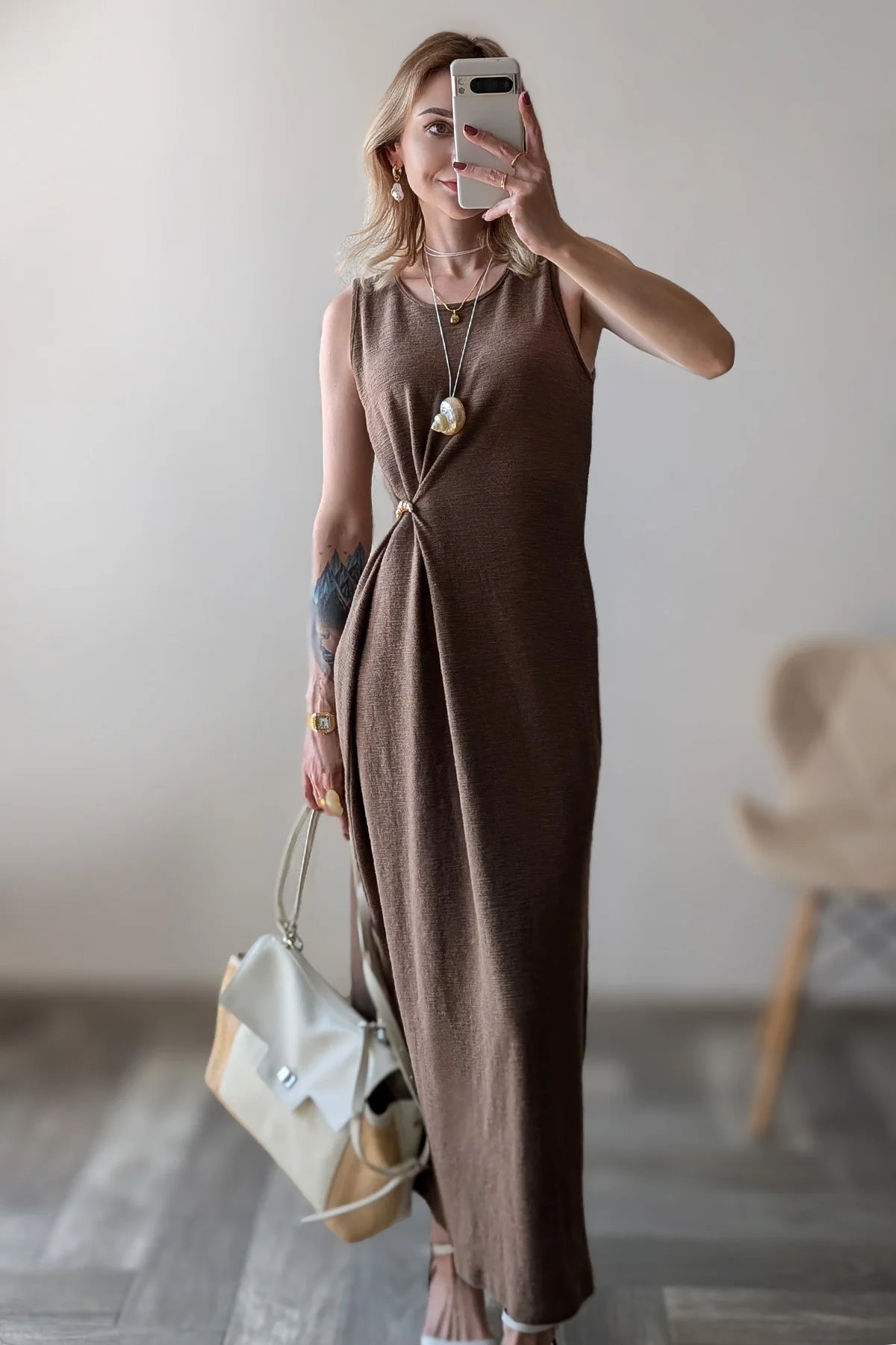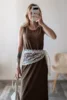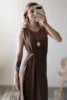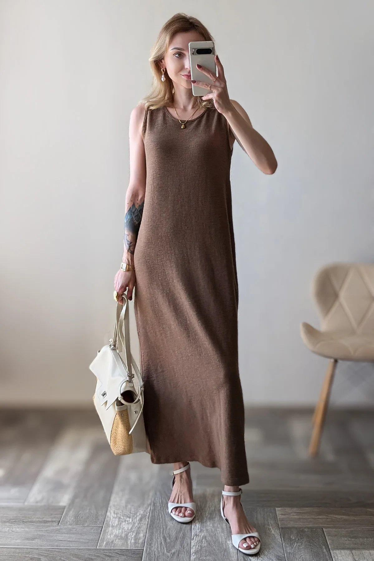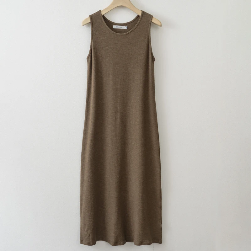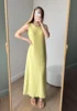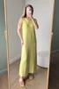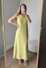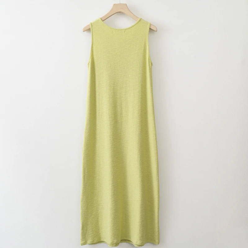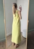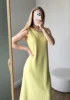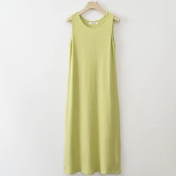 2025 летнее женское однотонное льняное модное платье без рукавов с v-образным...