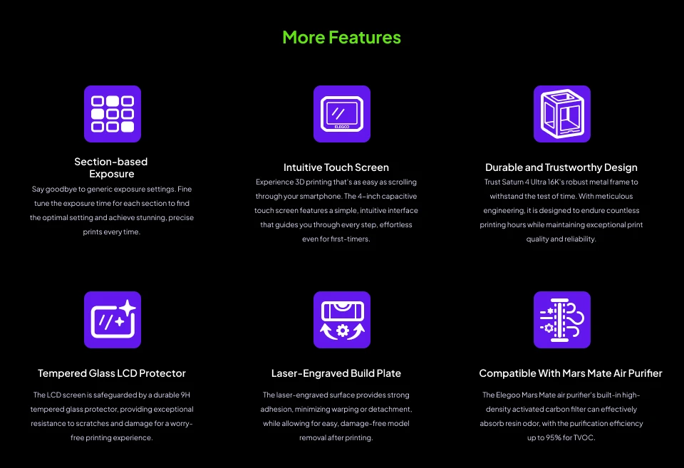 Saturn 4 Ultra 16K, созданный для захвата мельчайших деталей для изысканных моделей, может похвастаться сверхвысоким разрешением, гарантируя, что каждая модель взрывается с гладкими поверхностями, реалистичными текстурами и безупречной точностью.