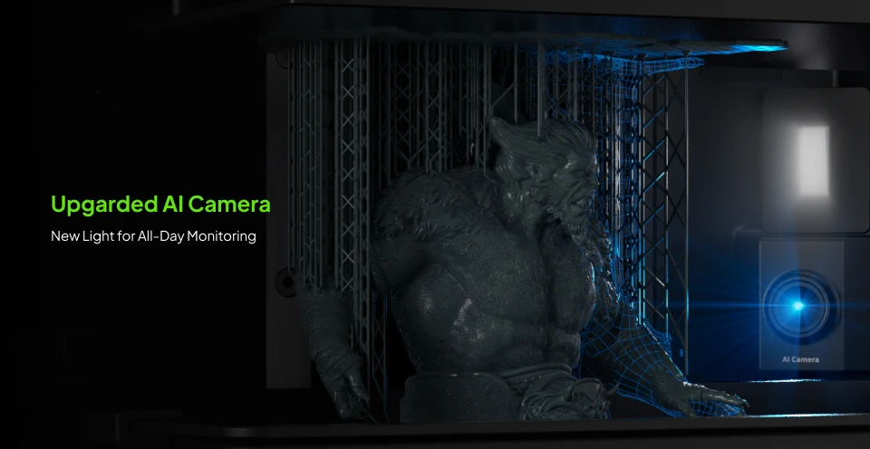 Новая камера AI с подсветкой для мониторинга в течение всего дня Камера AI обеспечивает мониторинг в реальном времени и мгновенные оповещения о пустых пластинах и деформированных моделях, что позволяет вам решать их без промедления.Благодаря встроенной камере вы можете легко проверять прогресс печати днем и ночью, а функция замедления времени позволяет легко запечатлеть и делиться своим творческим путешествием.