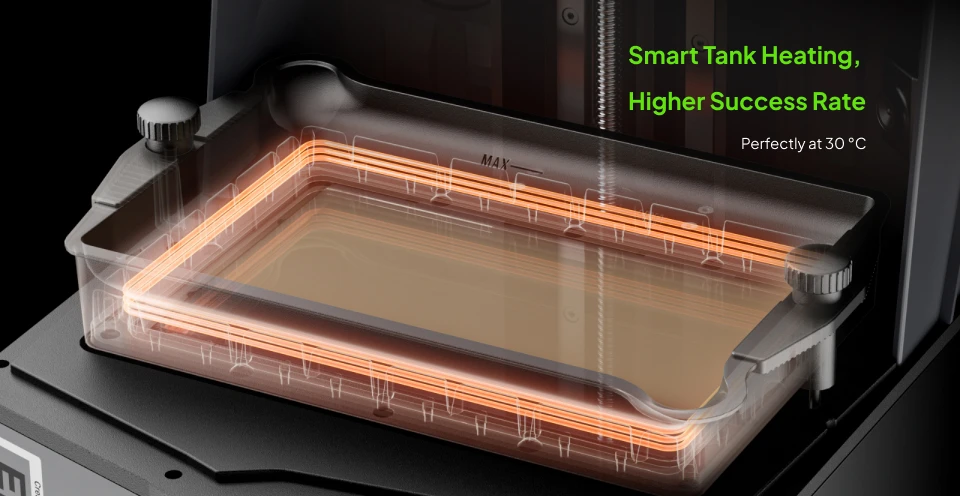Saturn 4 Ultra 16K оснащен интеллектуальной системой нагрева резервуара, которая продолжает нагревать смолу, чтобы поддерживать ее в идеальном режиме 30.°C, обеспечивая лучшую текучесть и адгезию слоев.Это значительно уменьшает такие дефекты, как пузырьки и разделение слоев, что приводит к более высоким показателям успеха и лучшему качеству печати.