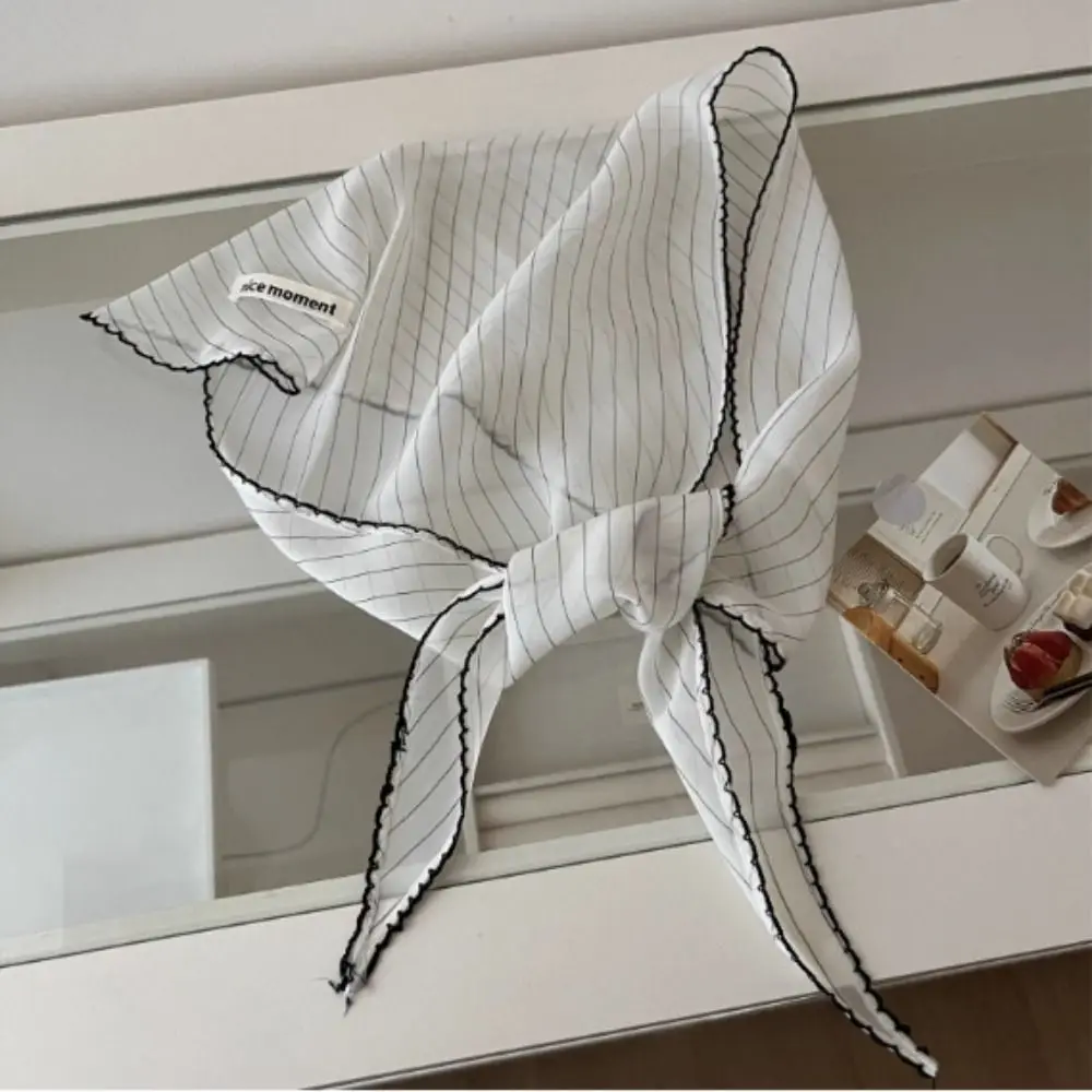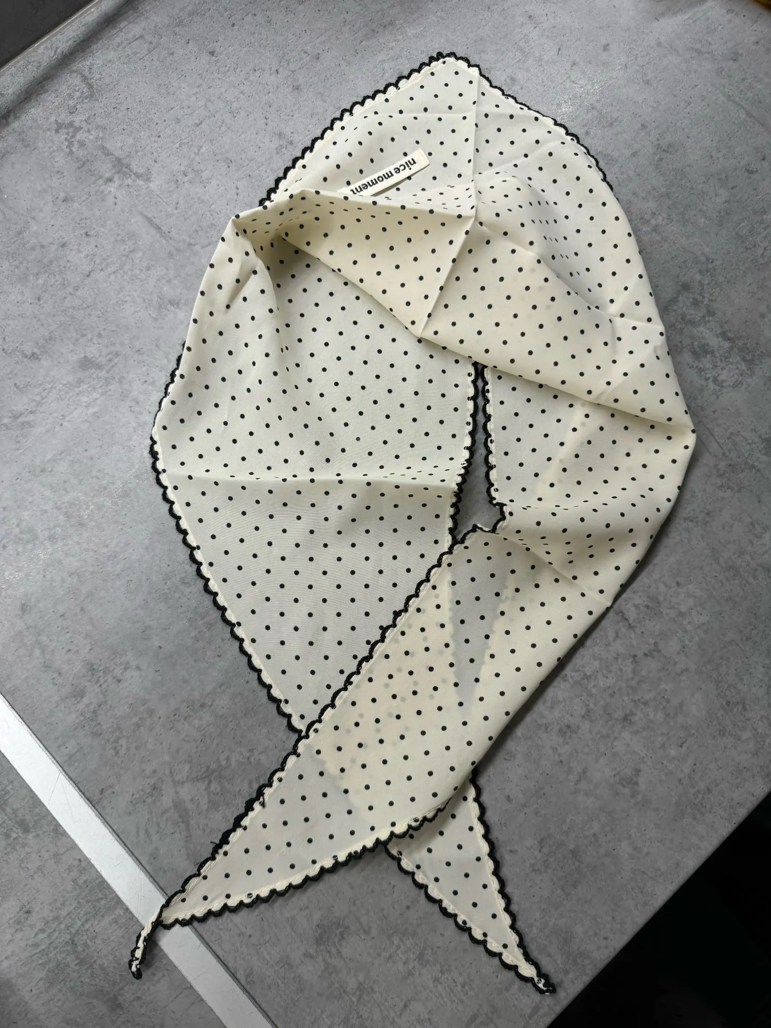 Шейный платок, милая повязка на голову в горошек, тюрбан, корейский свежий маленький шарф, тонкая полосатая треугольная повязка для волос для девочек