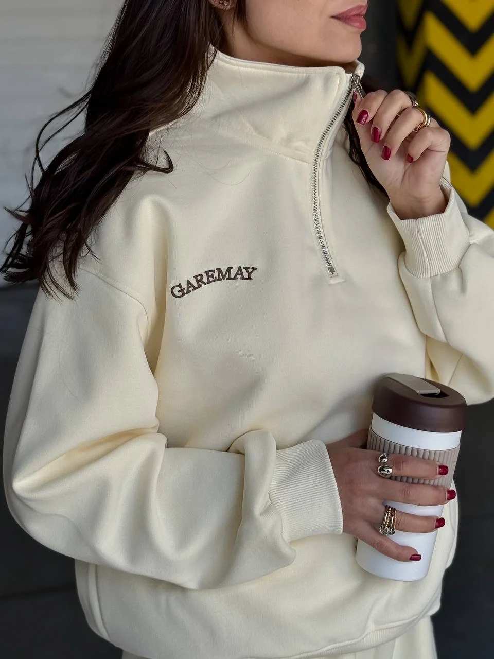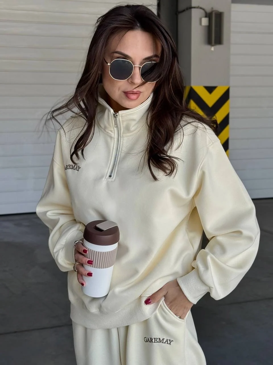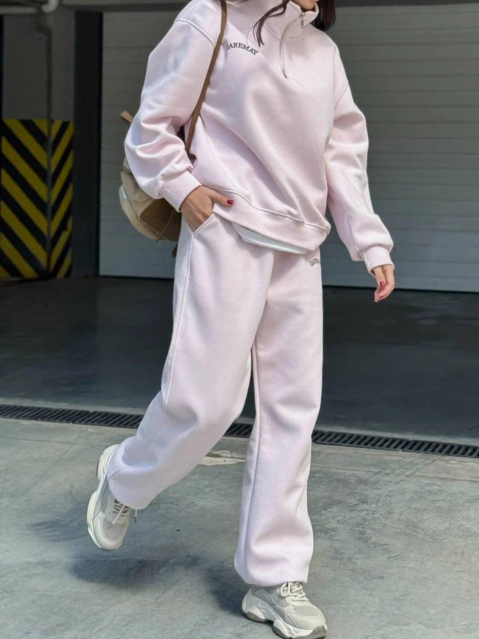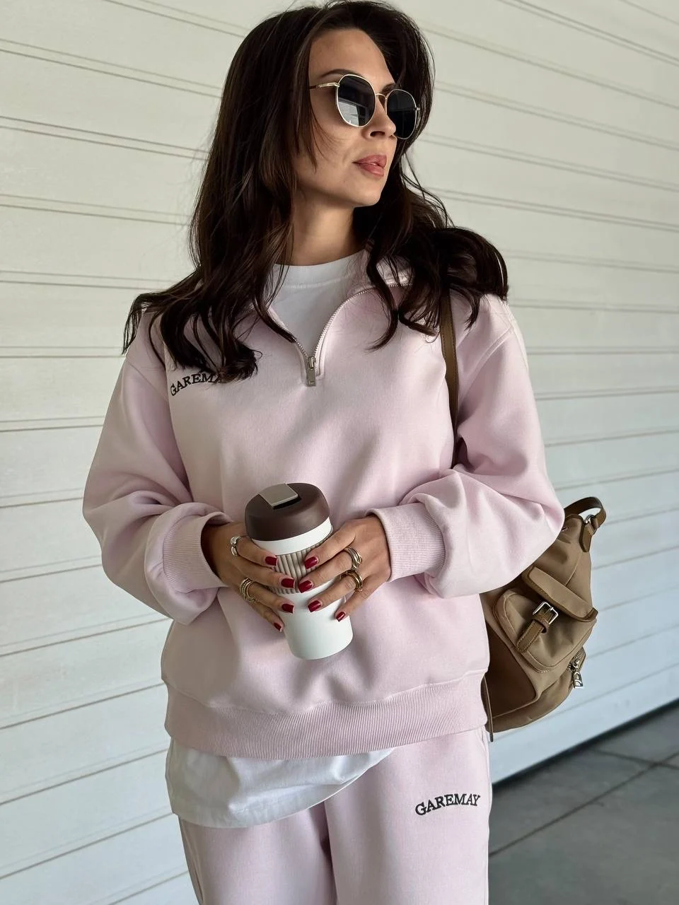 Трикотажный спортивный костюм На свои параметры 88/66/88 см, грудь 75С и рост 160 см брала костюм в размере S. По объемам и длине хороший запас - подойдет и на высокий рост. На свой рост брюки подворачиваю резинкой во внутрь - так лучше смотрится и мне более комфортно. Мне брюки длинные, без подворота внизу сборят. Состав: 80% хлопок, 20% полиэстер. Не утепленный, но теплый. Очень мягкий и комфортный. У свитшота горловина-стойка на замке. Брюки джоггеры с резинкой внизу штанин. Имеют глубокие боковые карманы. Пояс на резинке, не давит, очень комфортная посадка. У костюма в светло-желтом цвете вышивка лого бренда в коричневом («кофе с молоком») цвете, а у светло-розового костюма - вышивка лого в черном цвете. Мой любимый спортивный костюм! Ношу его круглогодично - и летом, и зимой (с термобельем, конечно). Мой костюм в цвете «меланж» уже точно пережил 100 стирок - качество ткани превосходное - остался первоначальный вид и состояние, без катышков! Материал у костюмов потрясающий - на ощупь бархатистый и тактильно есть схожесть с велюром. В общем, рекомендую!