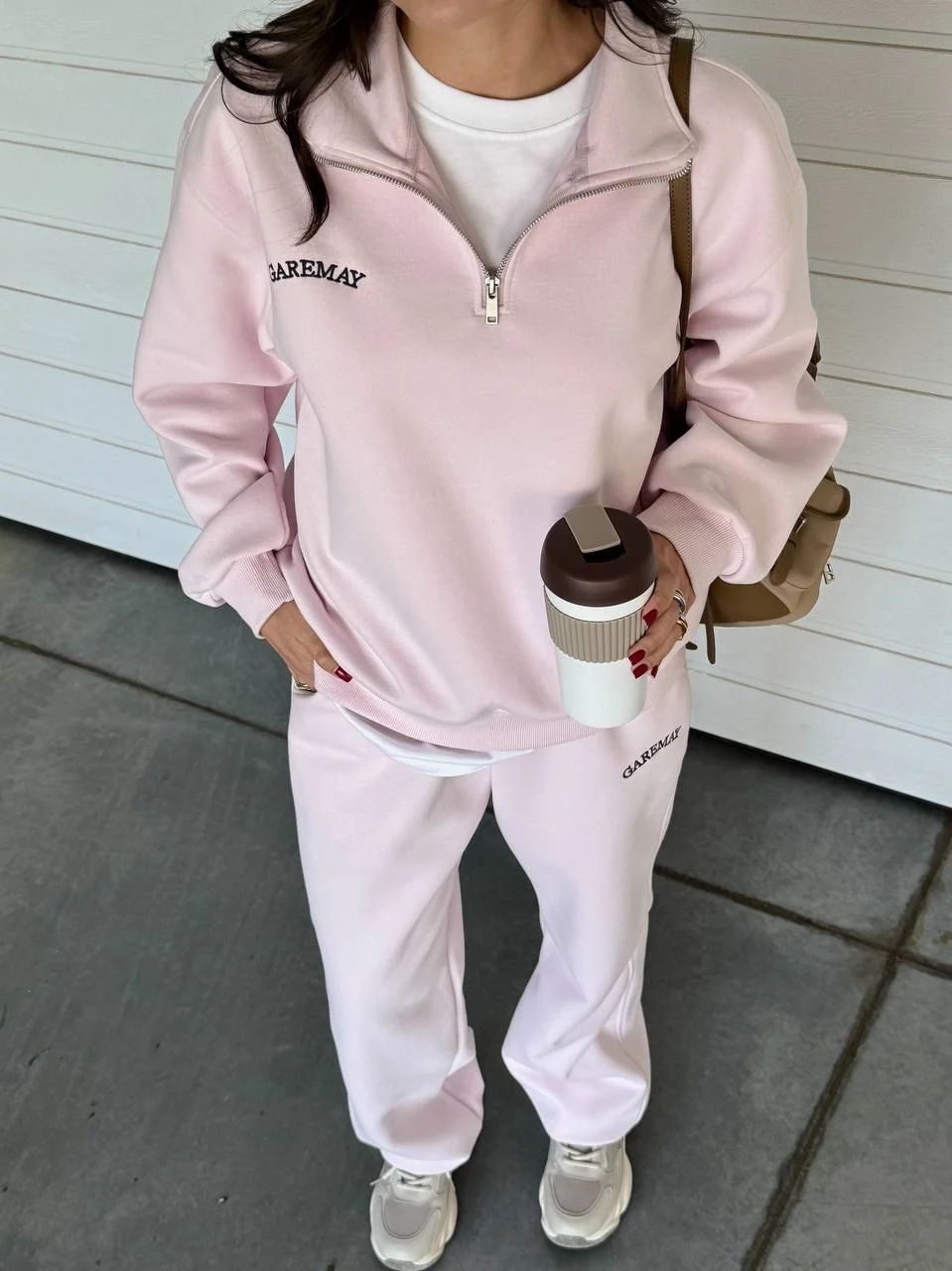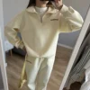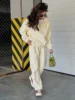 Весенний женский спортивный костюм на молнии, хлопковый классический розовый комплект из двух предметов, женские повседневные желтые брючные костюмы для женщин