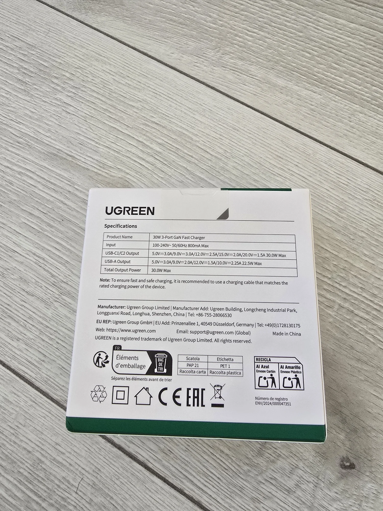 UGREEN Зарядное устройство GaN 30 Вт, 3 порта PD 3.0 USB C Зарядное устройство...