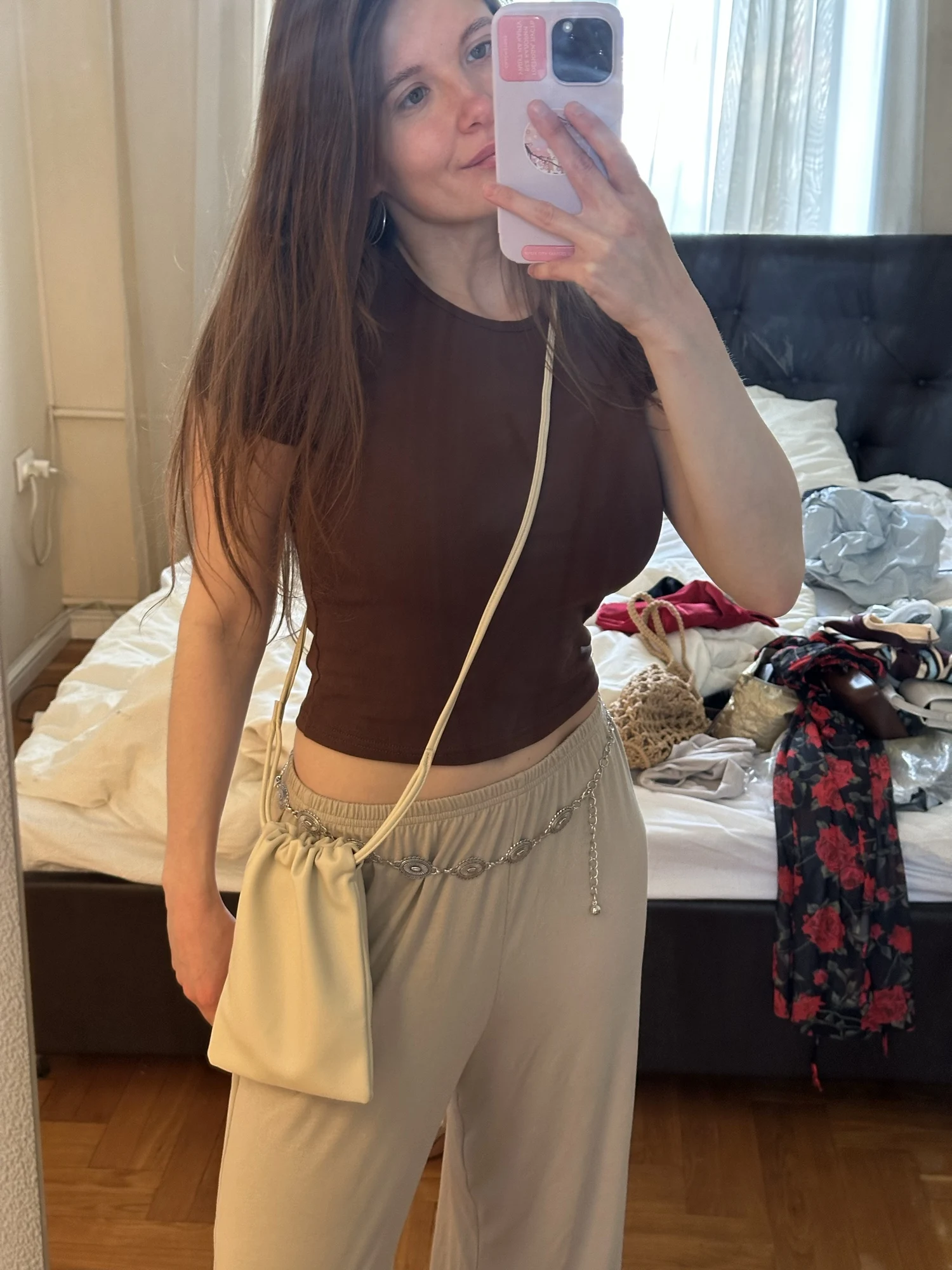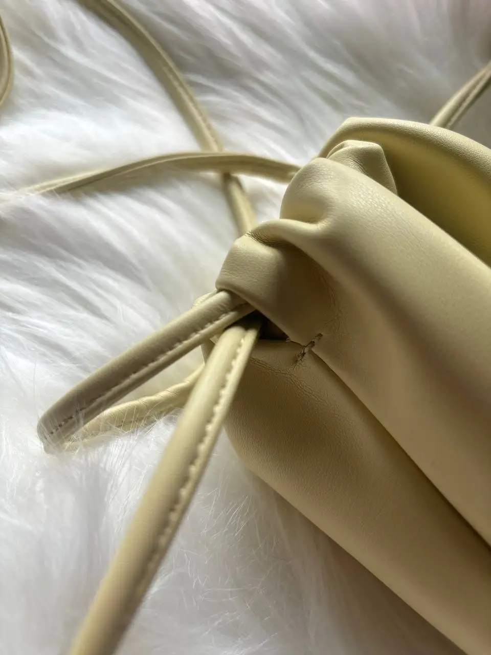 100% попадание в сердечко💘 Сумка - восторг, выглядит точно дороже и смотрится очень стильно🙌🏻 Модный цвет сливочного масла. Планирую взять еще в других цветах💓 📌Пришла быстро в постамат, все было хорошо упаковано. 📌Материал - мягкая искусственная кожа, фактура приятная, выглядит достойно. 📌Я распорола шнурки и завязала узлами, за счет этого сумка выглядит более трендово и позволяет отрегулировать ремешок по длине. 📌Внутри есть подклад черного цвета. 📌Вместительная, войдет не только телефон, как я ожидала, но и другие важные мелочи. Летом такая сумка просто мастхэв. Рекомендую! Еще находки у меня накaнaлe)