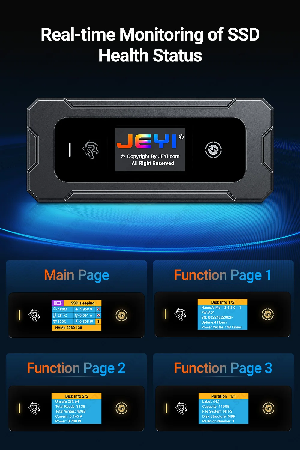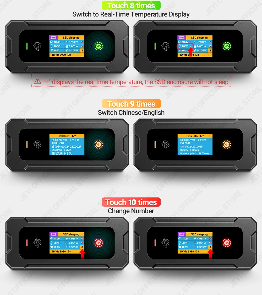 Упростите управление жестким диском с помощью нашего запатентованного быстрого повторного подключения.Три касания экрана, и вы подключены, нет необходимости отключать кабель.(Патентный номер JEYI:202320863617.0)