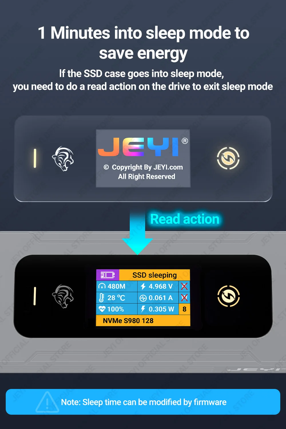 Если корпус SSD переходит в спящий режим, вам необходимо выполнить чтение на диске, чтобы выйти из спящего режима.