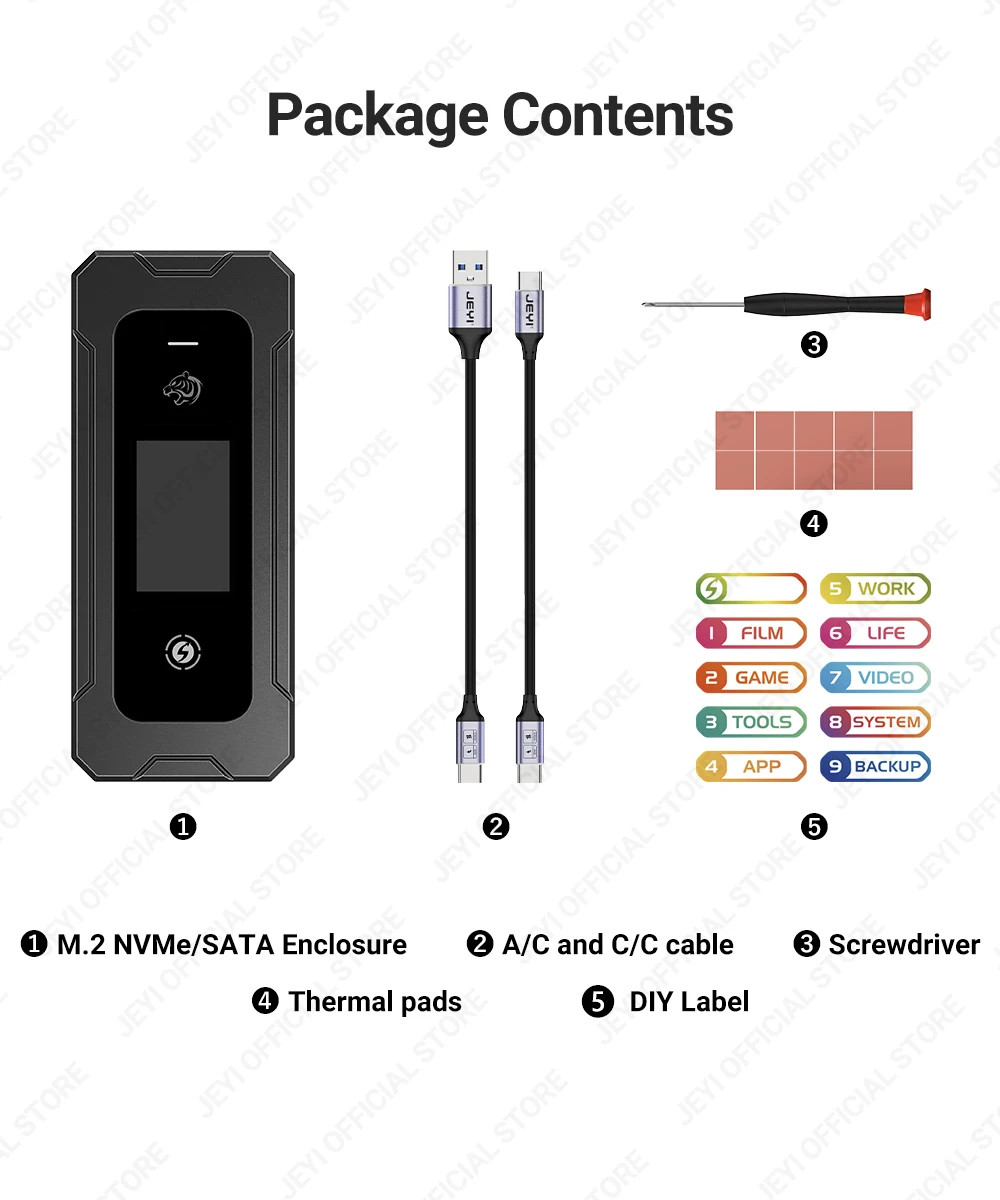 Корпус внешнего жесткого диска JEYI это не просто место для хранения; это крепость данных.Созданный с высокой точностью и инновациями, он является идеальной защитой ваших ценных файлов: он имеет гладкий полностью алюминиевый внешний вид, интеллектуальный цветной дисплей и универсальную совместимость.Поприветствуйте будущее хранения и обеспечения безопасности данных.