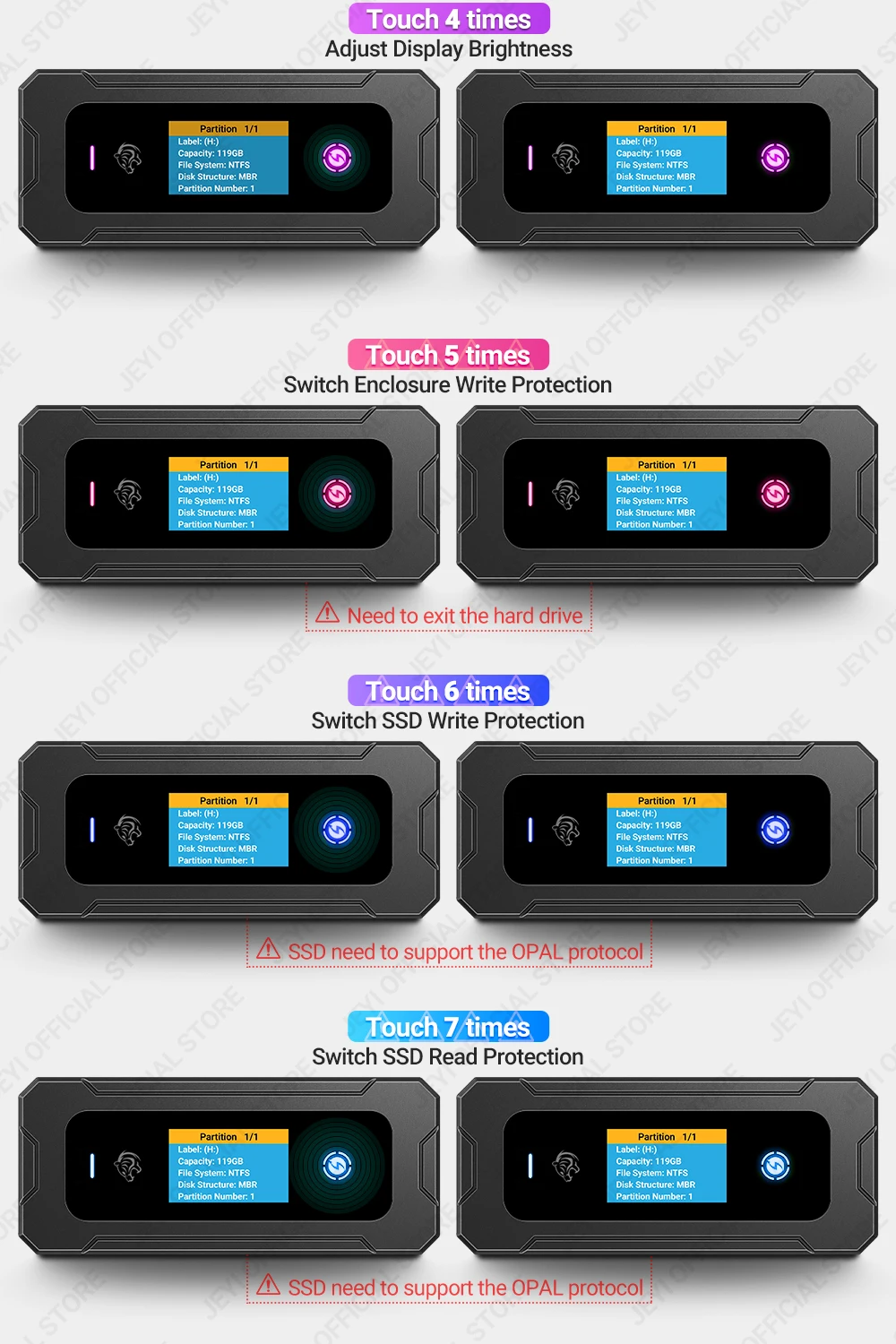 Сенсорный 7-кратный переключатель SSD Защита от чтения
