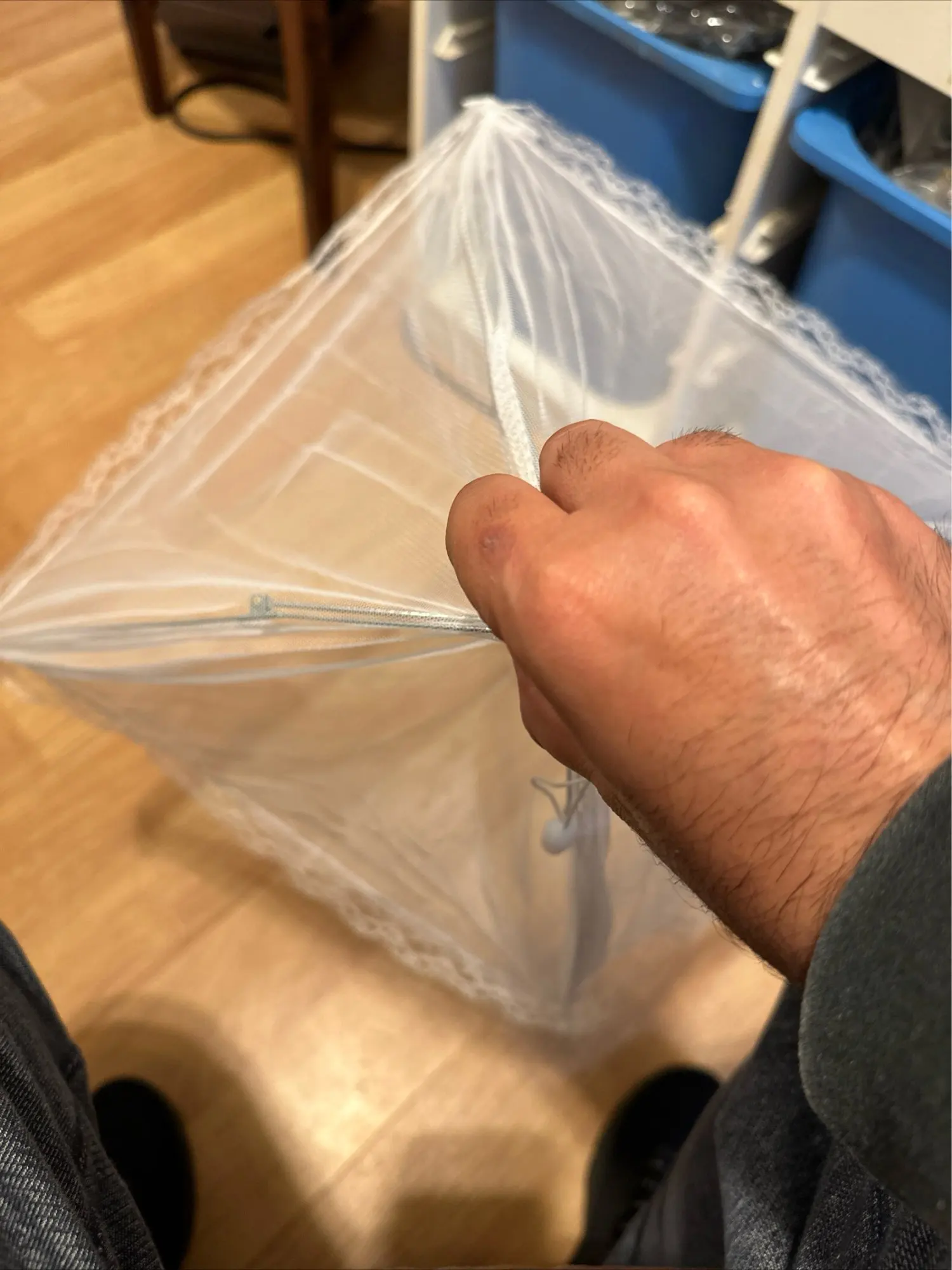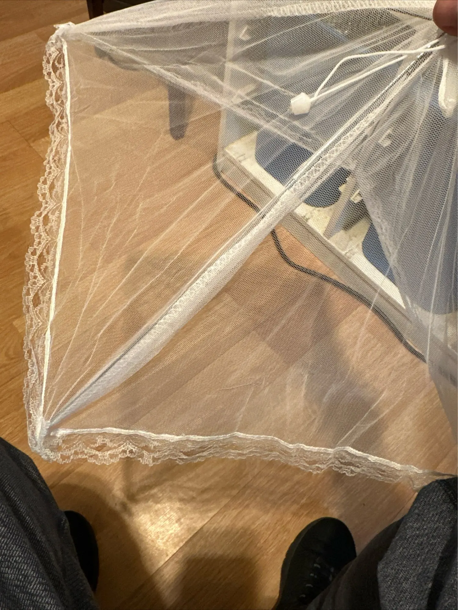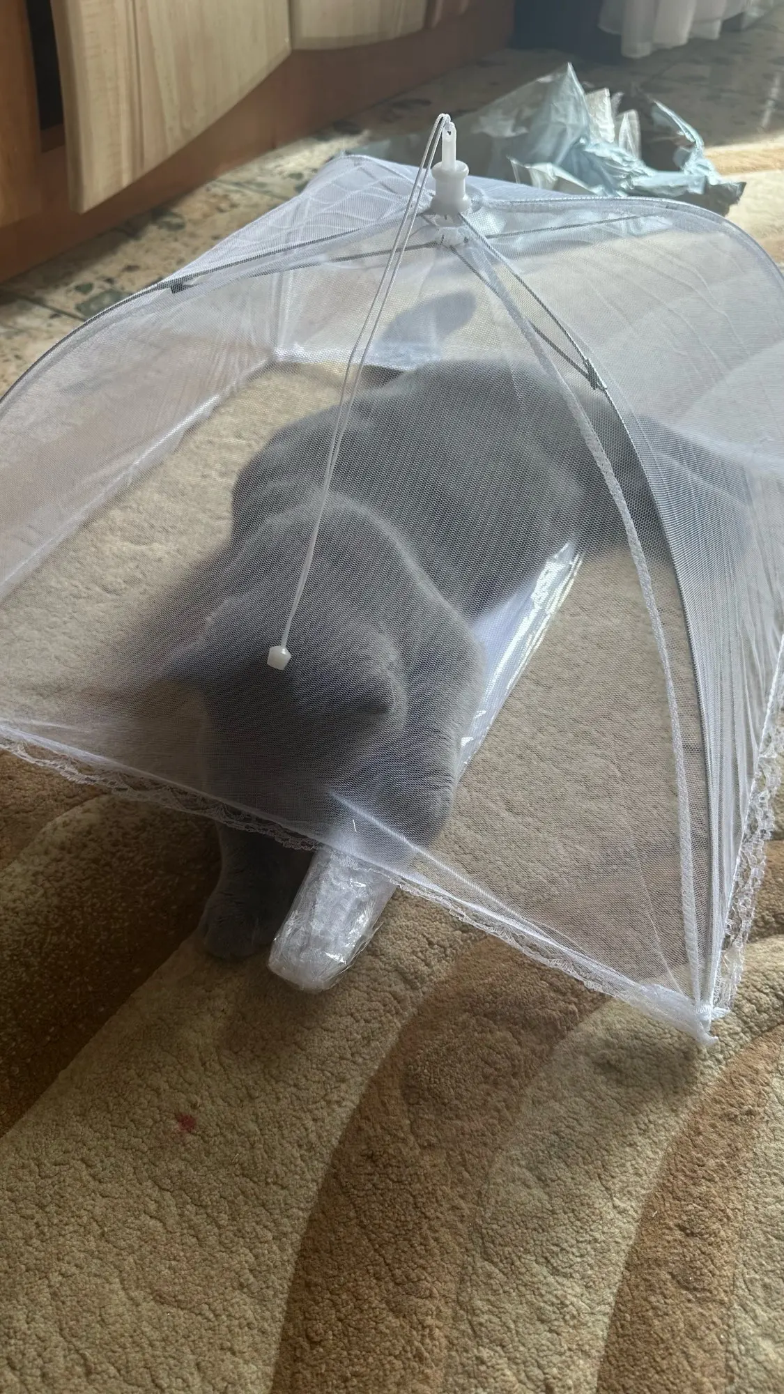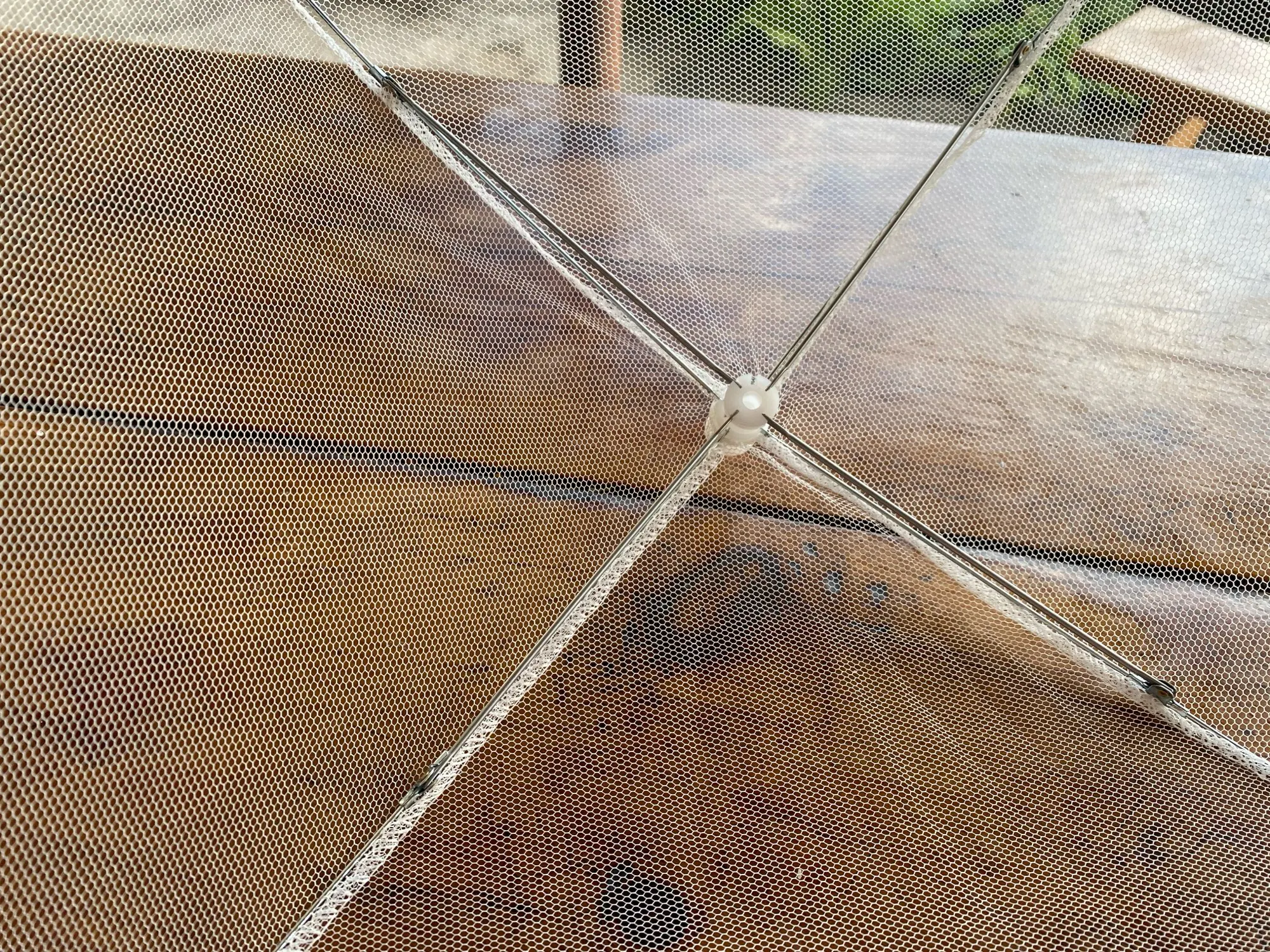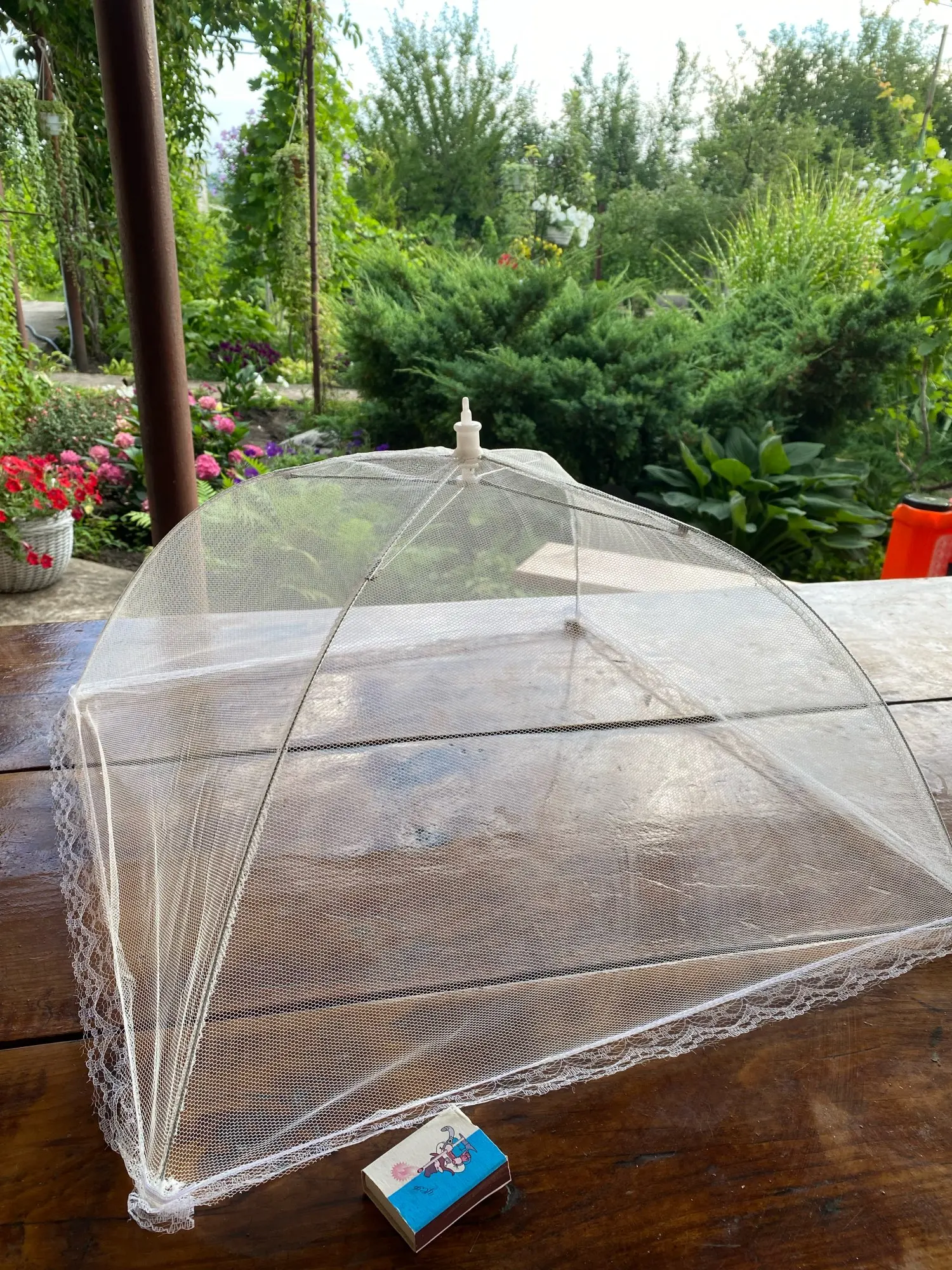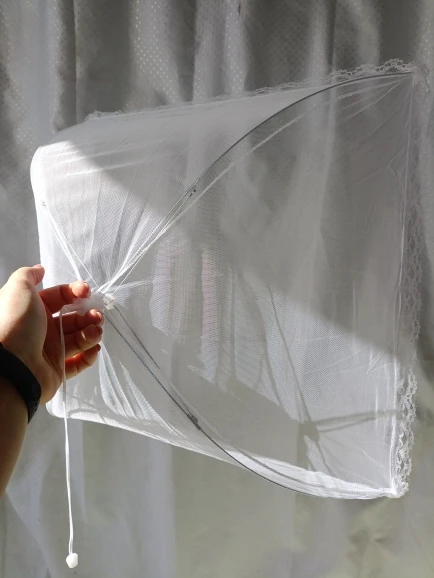 Складной зонт из пищевой сетки имеет плотную сетку, поэтому насекомое не проникнет легко внутрь.