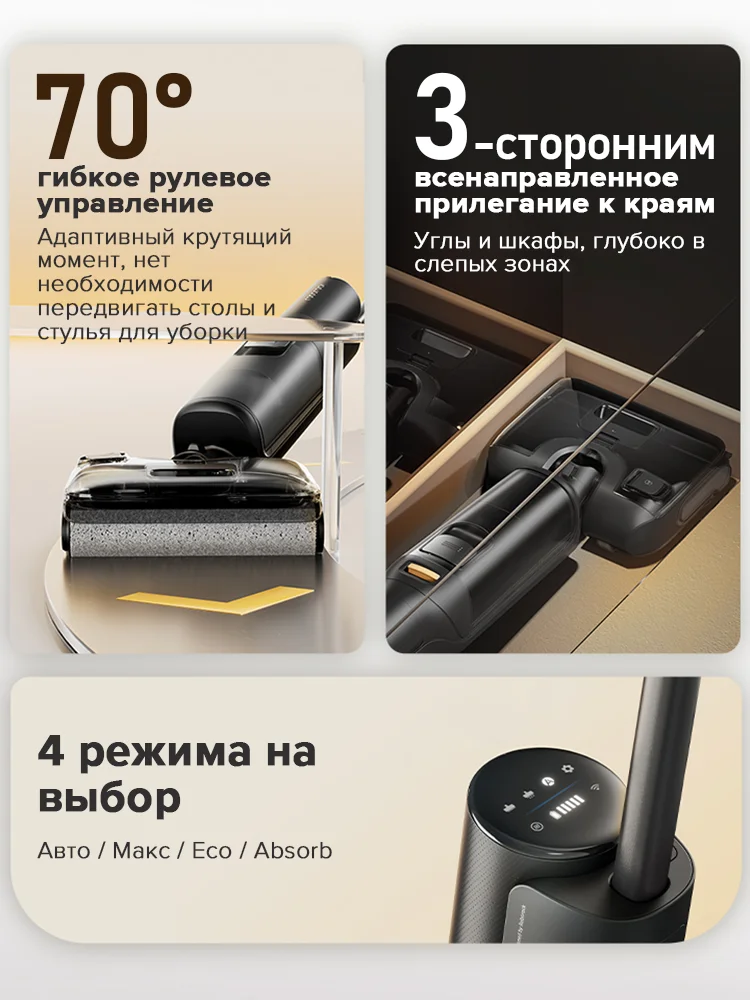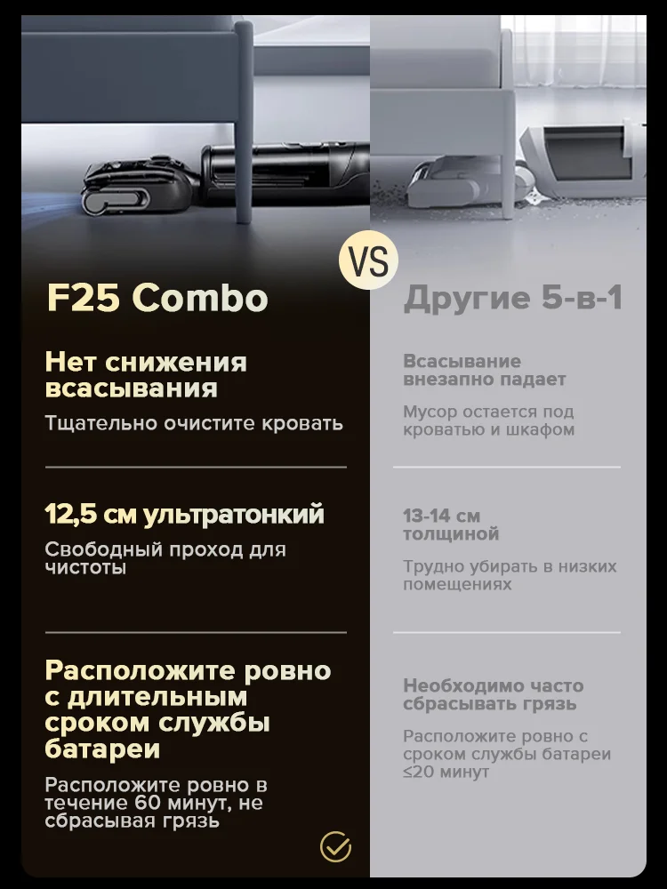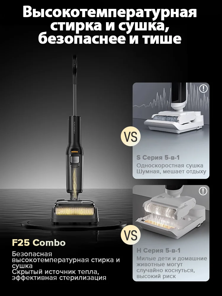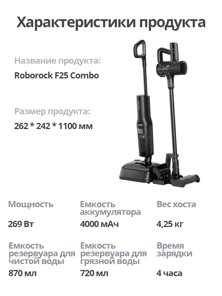 Roborock F25 Combo,5-в-1 combo,мощность всасывания 20000 па, dyad pro combo обновленная версия,5 мин быстра сушка,пылесос для влажной и сухой уборки,1мм уборка вплотную к стенам,90°c сушка горячим воздухом