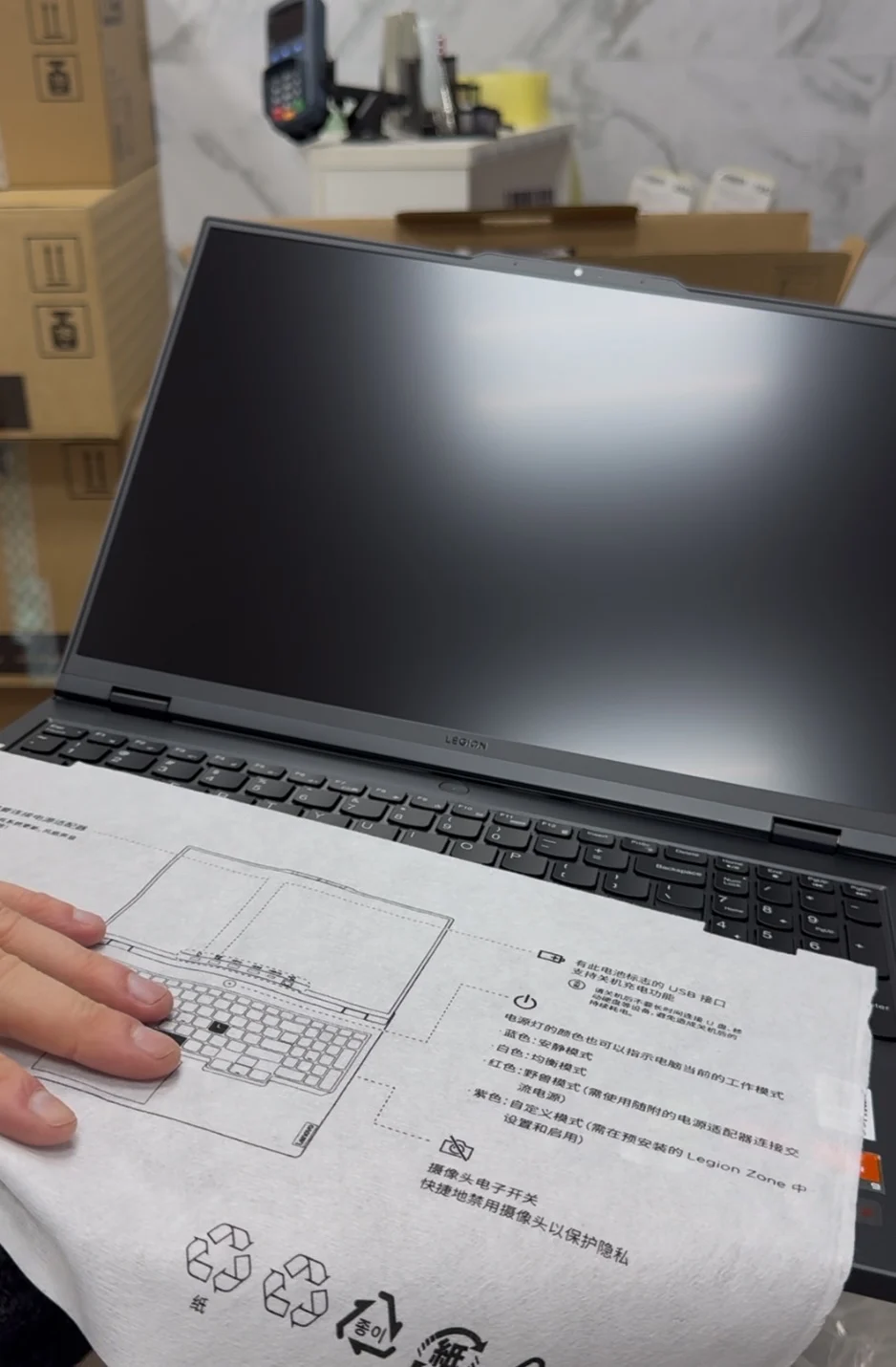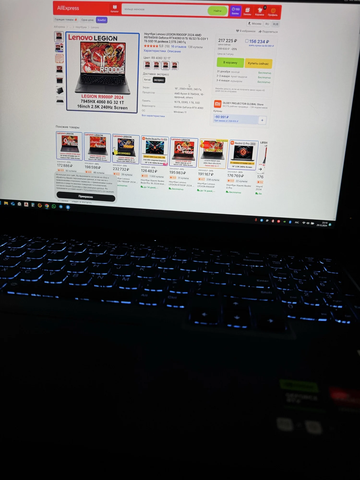 Заказывал ноутбук в конце февраля за 119к рублей. В моменте видел цену 110к, было немного обидно ну да ладно. Пришел 2 апреля в Пятигорск. Ноутбук целый невредимый, полностью новый. Коробка была запломбирована наклейкой от продавца. Серийный номер на коробке, на ноутбуке и в системе совпадают. В комплекте шли подарки (бесполезные): мышь и наклейки на клавиатуру. Корпус ноутбука приятный. Дизайн строгий, красивый. Крышка ноутбука сделана из металла, а лого светится. Остальная часть из пластика, очень плотного, качественного. Шарниры крепкие, хорошо фиксируют положение экрана. Клавиатура с белой подсветкой, очень приятная на ощупь, и ход клавиш тоже приятный. Тачпад обычный, ничем не примечательный. Вес у ноутбука нехилый, не самый удобный вариант, чтобы носить с собой. Еще и тяжёлый блок питания гигантского размера (см. на фото, там сравнение размеров с Nintendo switch и мышкой). Буду докупать оригинальную GaN зарядку. Ноутбук можно заряжать по type c, но зарядка от телефона не подойдёт, нужен очень мощный блок питания, минимум на 100W с поддержкой нужных протоколов. На самом ноутбуке стояла китайская windows, а на диске лежали драйвера. Если хотите переустановить windows, скиньте драйвера себе на флешку перед этим. При после переустановки, если не будет видеть WiFi, там будет пункт, поставить драйвер. Выберите из флешки папку с драйвером на wifi, система сразу же увидит все точки доступа. Советую поставить windows 11 home издание, т.к. винда автоматом подтянет ключ лицензии из bios и активируется. Еще советую потом зайти в свою учётную запись Microsoft и в личном профиле на сайте вам дадут office 2021. Нужно будет скачать оффлайн установщик, и будет вам лицензионный офис. Дисплей у этого ноутбука один из лучших. Лучше будет только OLED. Есть поддержка Dolby Vision, HDR, 240Hz, очень яркий и контрастный. Если установите все драйвера, не забудьте еще скачать x-rite color assistant. Программа скачает откалиброванный лично под ваш экземпляр дисплея профиль с серверов lenovo. Там можно будет выбирать цветовые пространства. Я поставил DCI-P3 Комплектующие в ноутбуке оригинальные, ssd быстрый. Ноутбук очень мощный, есть три профиля: баланс, тихий режим, и мощный. Во всех профилях процессор не опускается ниже 50°С. Вентиляторы ноутбука работают всегда, он не умолкает ни на минуту. Буду делать андервольт. В режиме энергосбережения ноутбука хватает ≈4,5 часа. Из явных минусов - звук из динамиков, он отвратительный, nahimic лучше не делает. Если хотите больше информации об этом ноутбуке, советую почитать про него в 4pda. А в целом ноутбук понравился. Отличный вариант кому важна мощность и отличный дисплей.