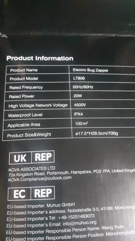 Корпус от комаров изготовлен из материала ABS, который имеет более высокую Сжимаемость, долговечность и более длительный срок службы. Он водонепроницаем и может использоваться на открытом воздухе.