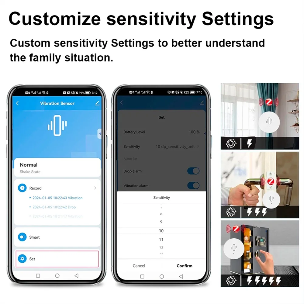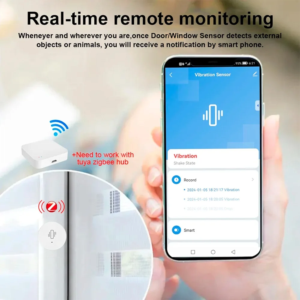 Enable the vibration detection function in the Tuya Smart/Smart Life App. When the device detects vibration, the APP alarm notification function will be triggered. Really monitor your home safety.