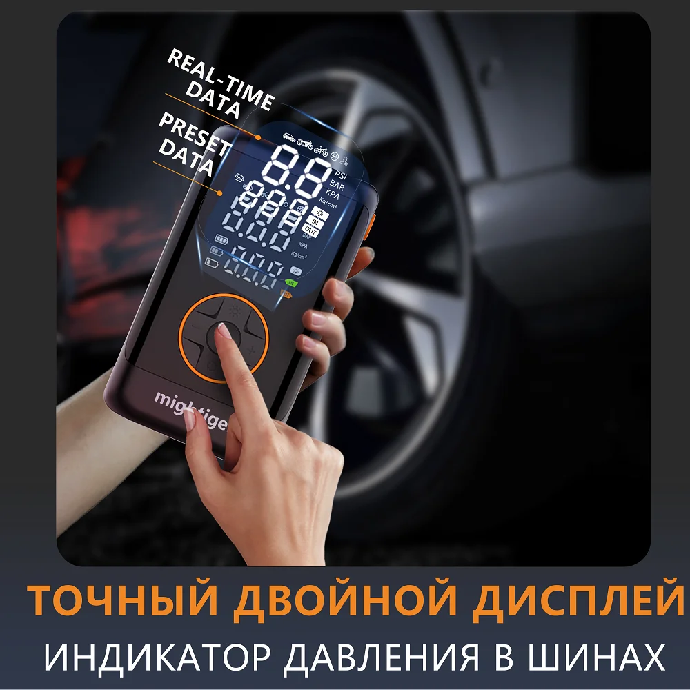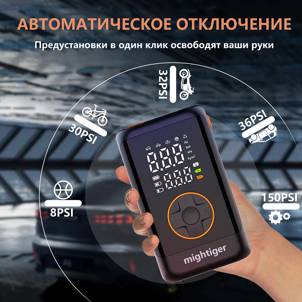 Цифровой дисплей и интеллектуальное управление. Цифровой ЖК-экран будет отображать текущее значение давления при подключении шинного насоса.Умный воздушный насос имеет 4 дополнительных блока, включая фунты на квадратный дюйм, бар, кПа, кг/см2.Благодаря функции автоматического отключения насос для накачивания шин будет перекачивать точное давление воздуха в шинах и автоматически прекращать накачивание, как только давление в шинах достигнет заданного значения.