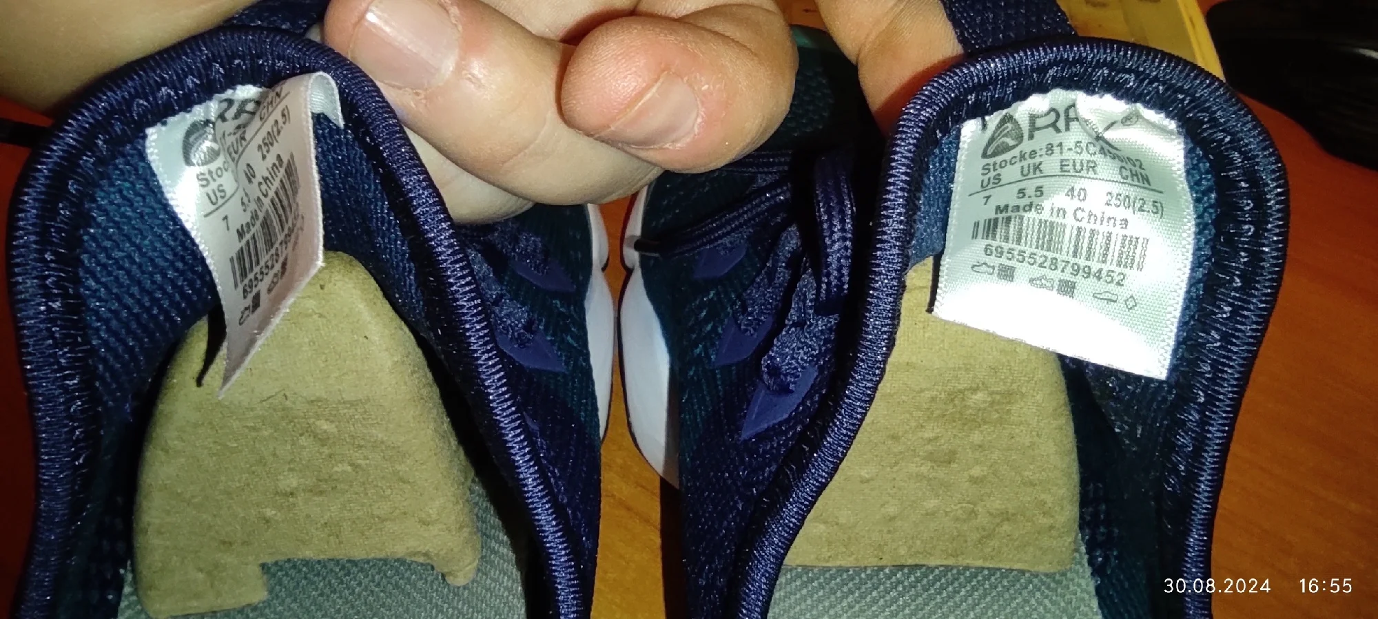 Кроссовки хорошие. Но есть одно НО: они на узкую ногу больше подходят. Мне слегка тесноваты. Хотя уже брал треккинговые RAXы 43-го размера и они мне вполне как раз. Эти несколько тесноваты, попробую передать другому хозяину. Ношу 42-43. А так они вполне неплохие: лёгкие, на вид не стрёмные. Дошли до СПб за полторы недели. Можно брать, но учитывайте узкий носок.