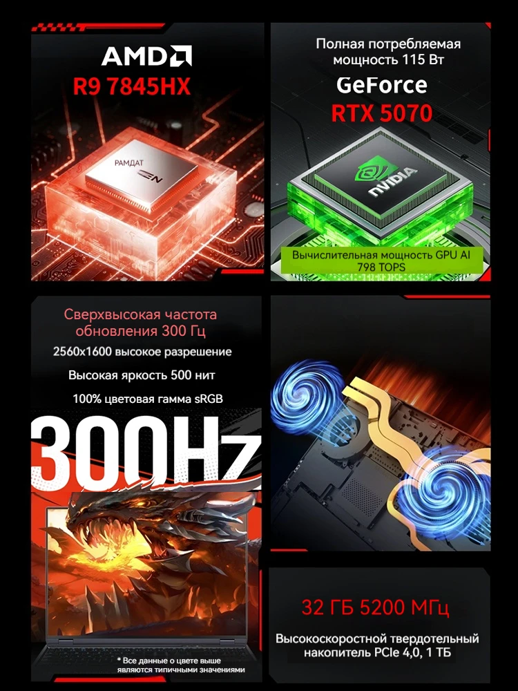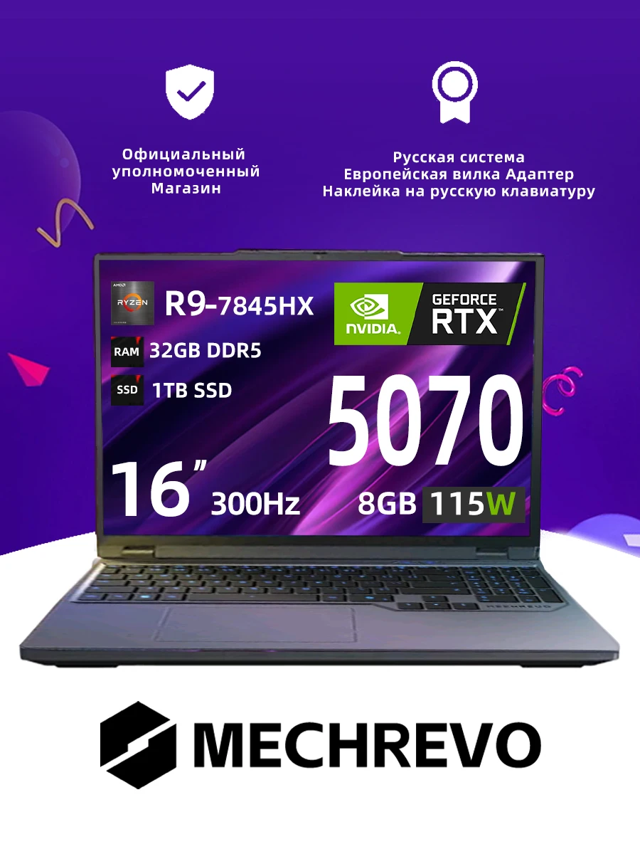 Игровой ноутбук MECHREVO, 16", 32ГБ/1ТБ, R9 7845HX, RTX 5070, Windows