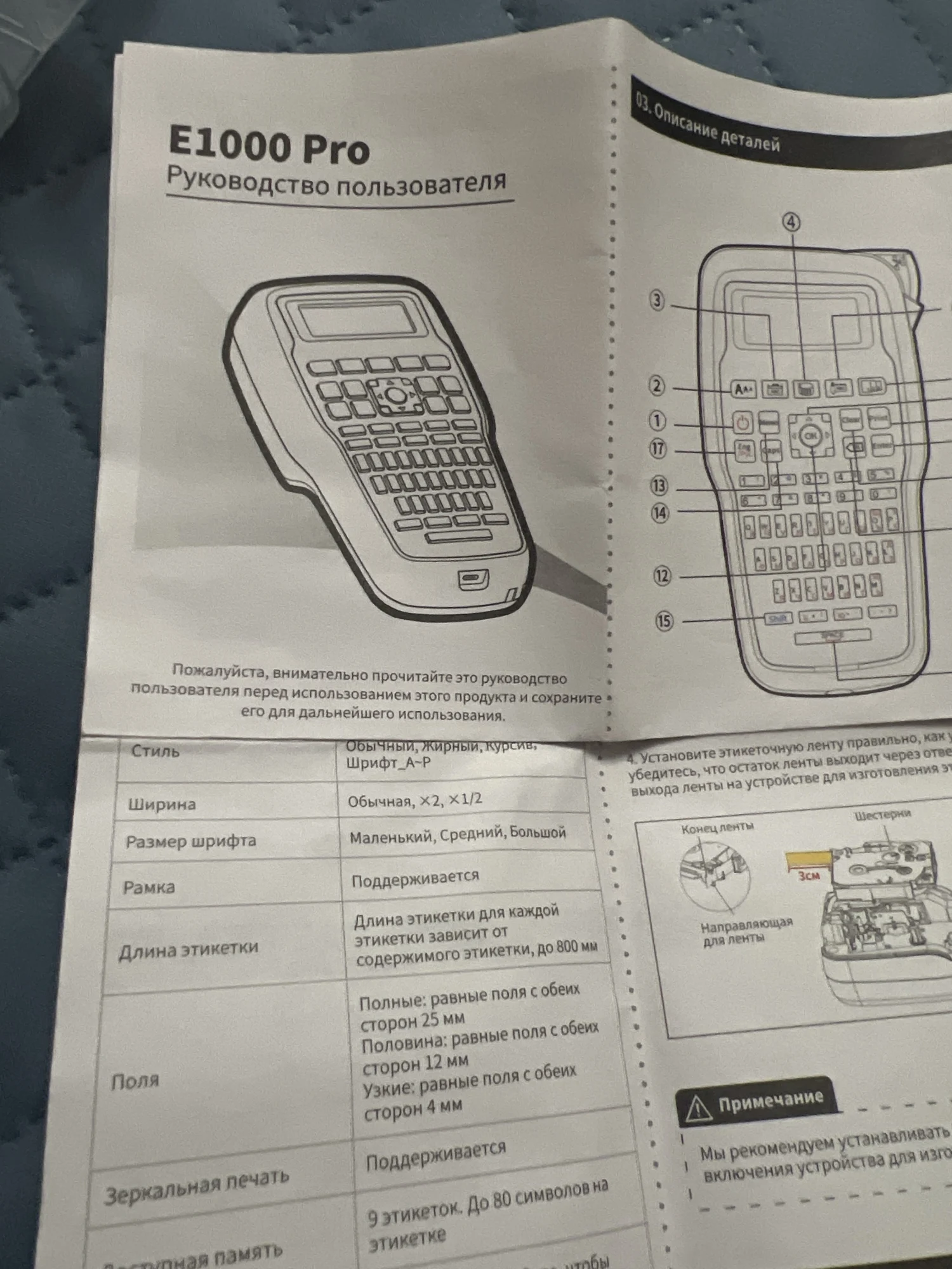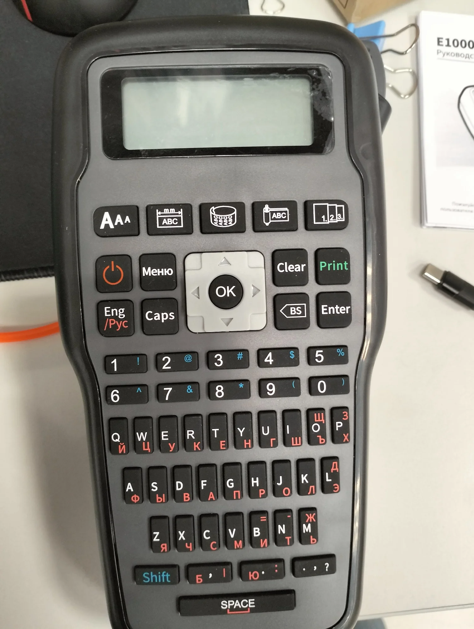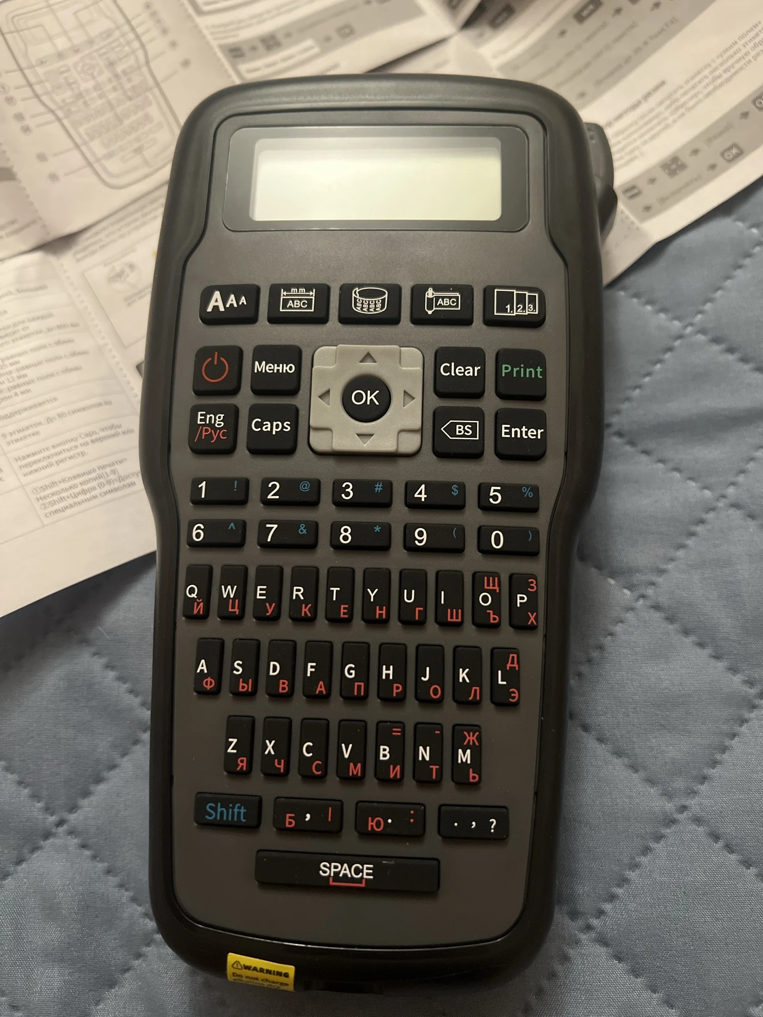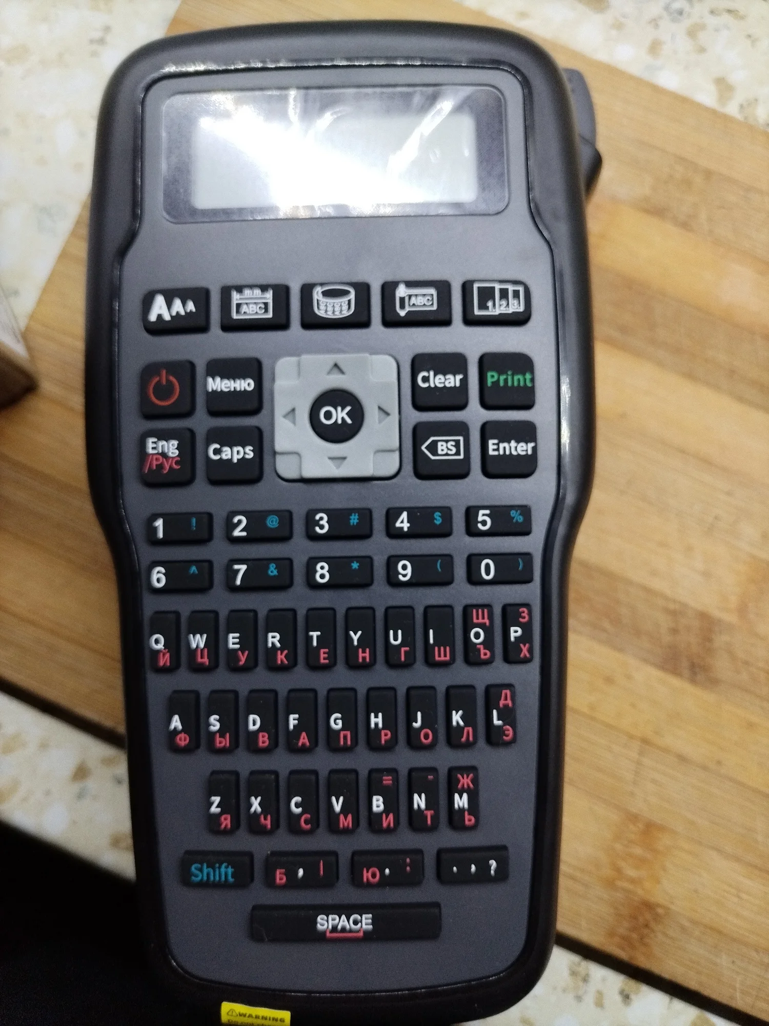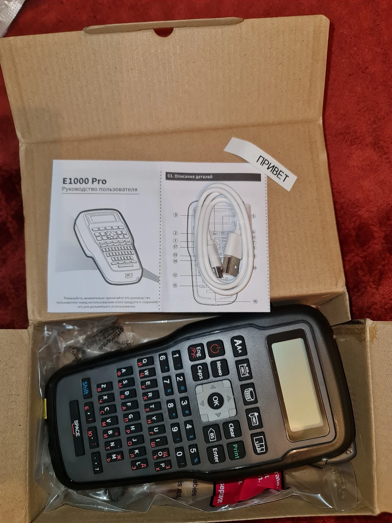 Принтер отличный, кириллица на клавиатуре, пришёл уже с лентой. Можно работать как от батареек, так и от блока питания мобильника tip-c. Надписи на наклейка не стираются не смывается не выгорают. Взял для маркировки, проводов, электрических приборов. Инструкция на русском языке. Упаковано отлично. Доставка около 2 недель.6667 u. 18 января 2025