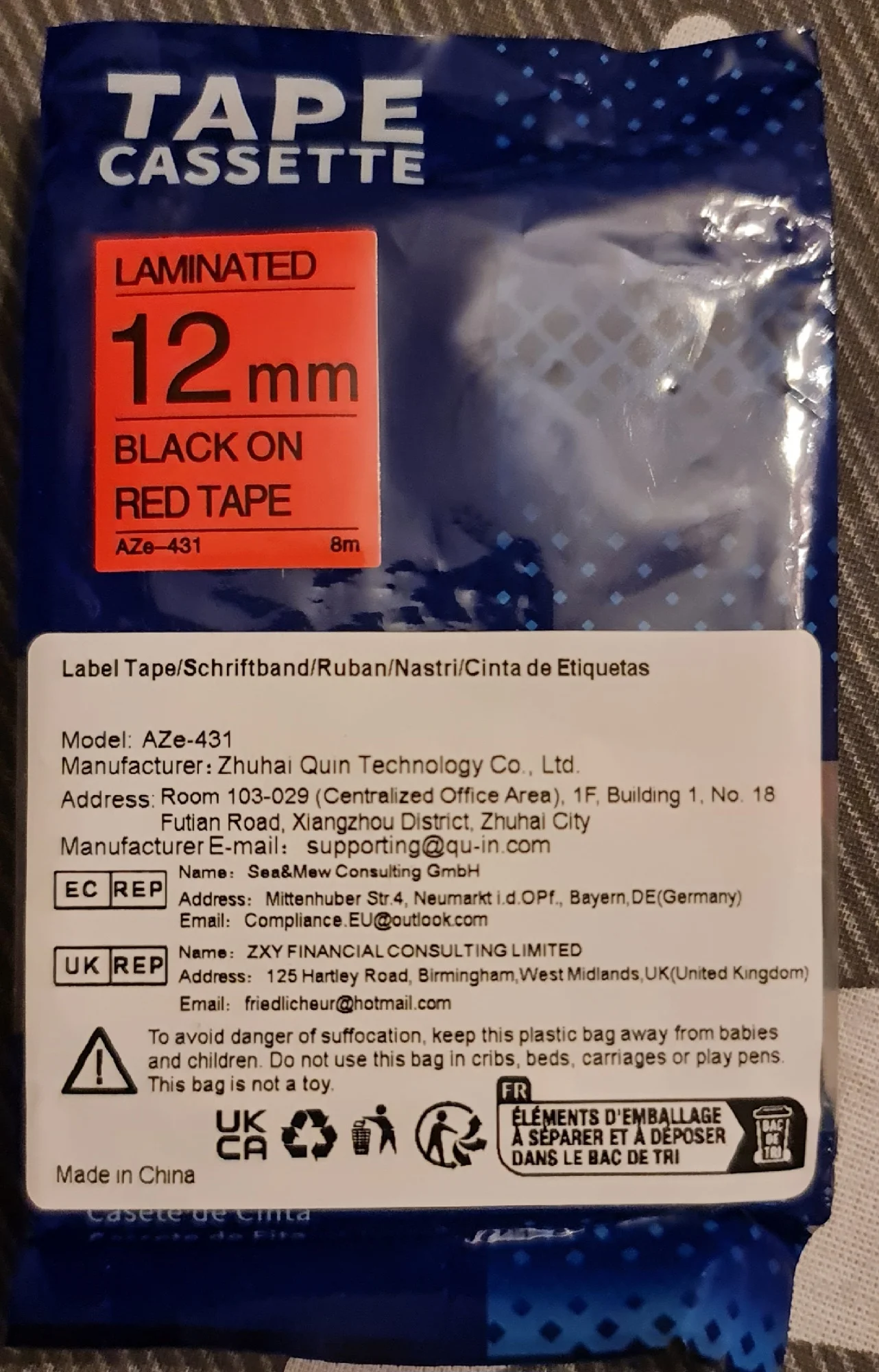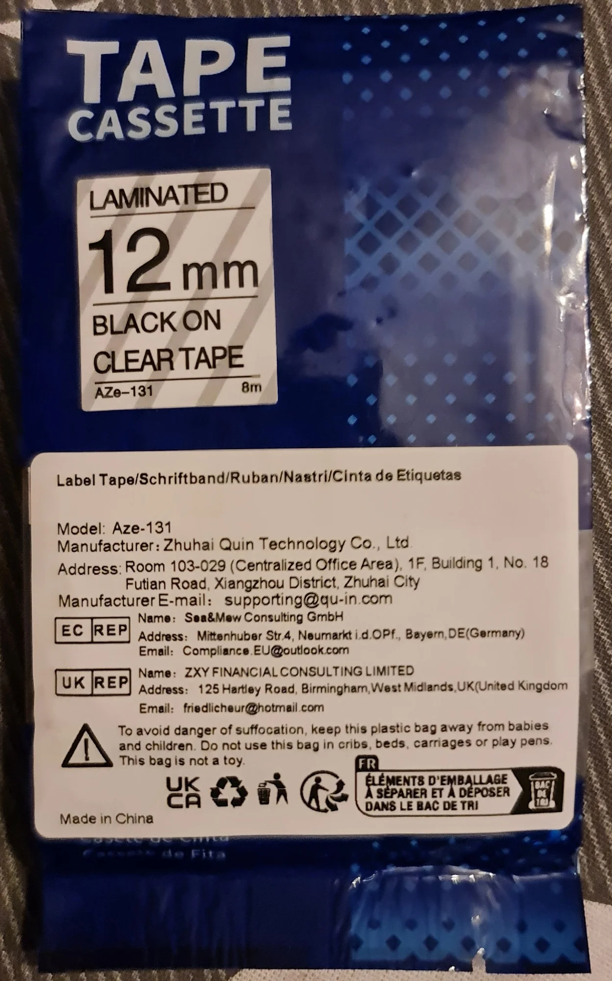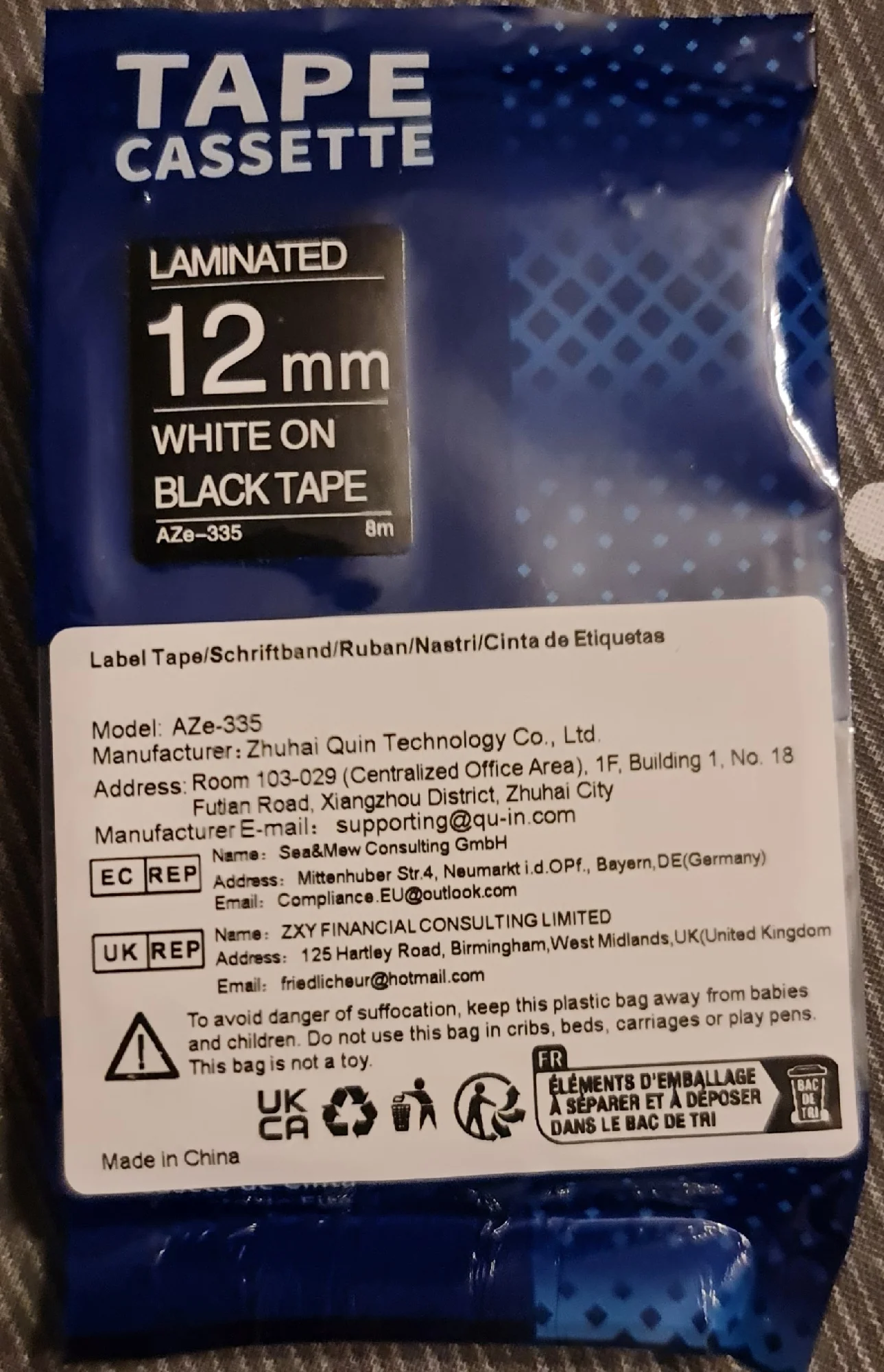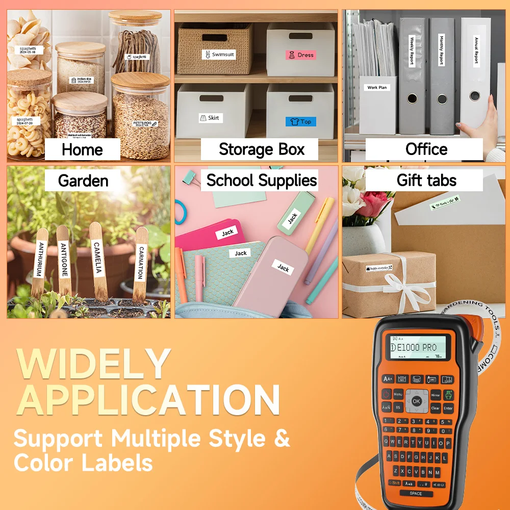 3. Работа с различными этикетками: Машина для изготовления этикеток E1000 совместима с лентами для этикеток Brother P-Touch TZe и промышленными этикетками 6 мм, 9 мм, 12 мм в различных материалах и цветах, таких как ламинированные/кетикетки/термоусадочные трубки/ленты/безопасность/ПЭТ/ткань и т. д.;