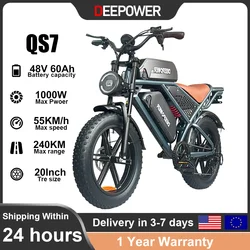 Электрический велосипед Deepower QS7 1000 Вт, 48 В, 60 Ач, 20-дюймовый электровелосипед с толстыми шинами для взрослых, горный внедорожный электрический велосипед с двумя батареями