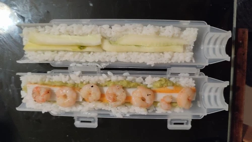 Быстрая доставка, получили спустя две недели после заказа. Роллы получаются, но формочка требует много риса, так что ролы будут очень объёмные. Мне понравились такие большие, но домашние не оценили.