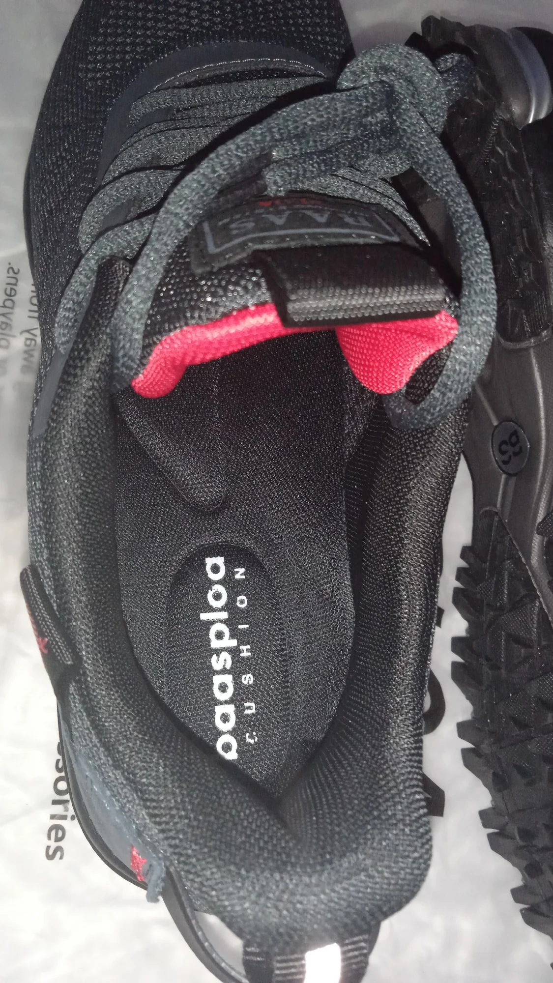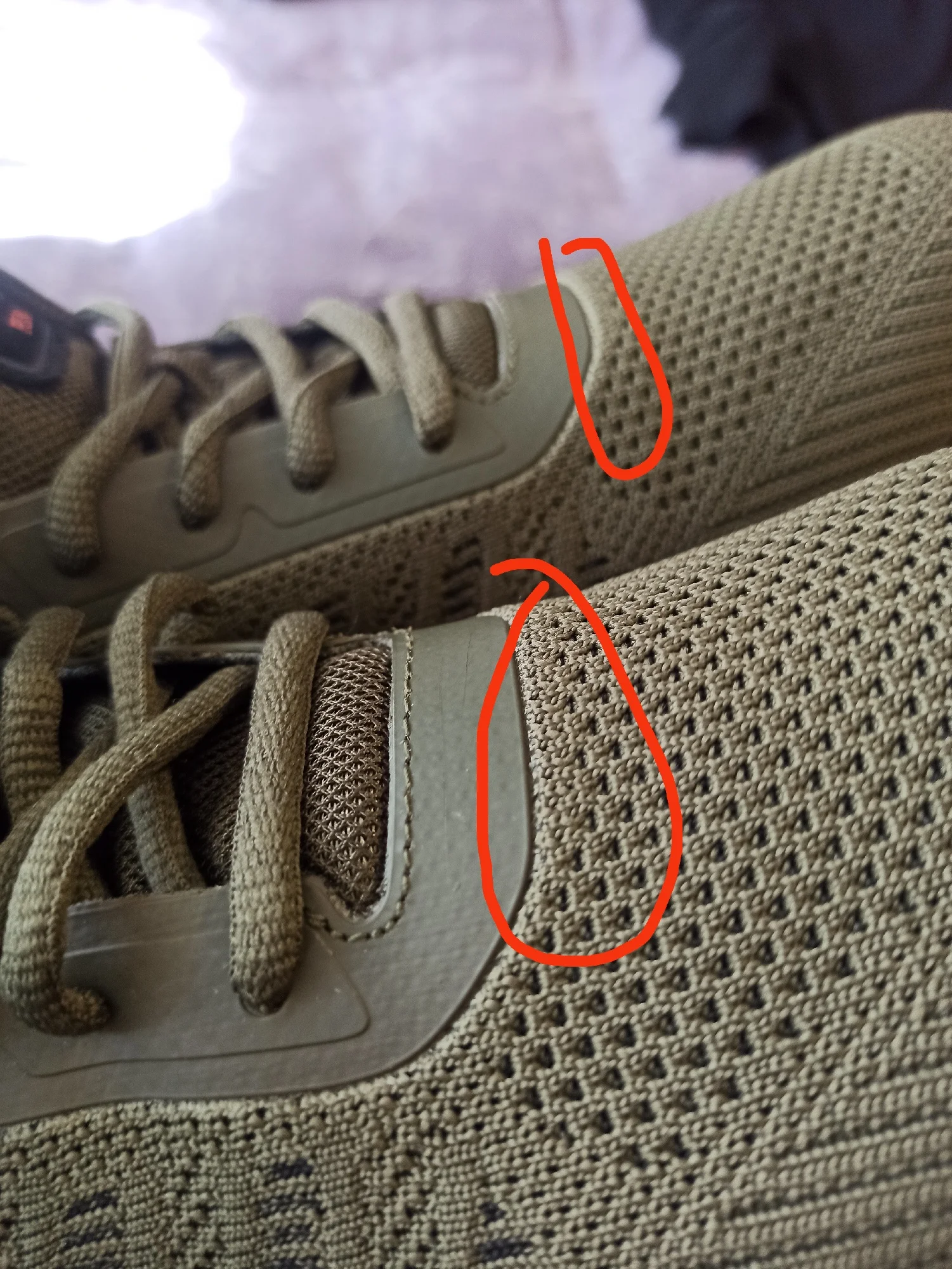 Кросы лёгкие и в принципе удобные, мягкая подошва, неплохо сидят, но есть некоторый нюанс... В носке, где основание язычка, слишком твердый пластик и во время сгиба, этот пластик давит на пальцы(на фото выделил в красный), надеюсь, что разносится, или придётся что то думать.. Запах есть, как от тапочек дешёвых. Стельки - обычная пенка, хоть и формованная. Подошва EVA + резиновая подметка. Мой размер 41(длина стопы 265мм) брал 42, отлично подошёл, длина стельки кроссовок 276мм.Alexandr L. 22 апреля 2023