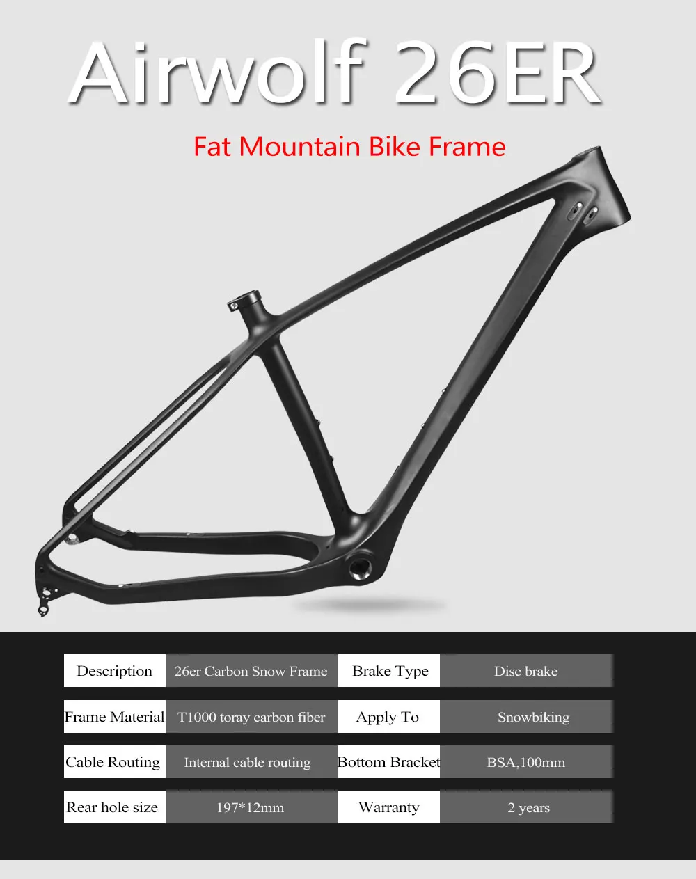 Airwolf Карбоновая рама для сноубайка 26"