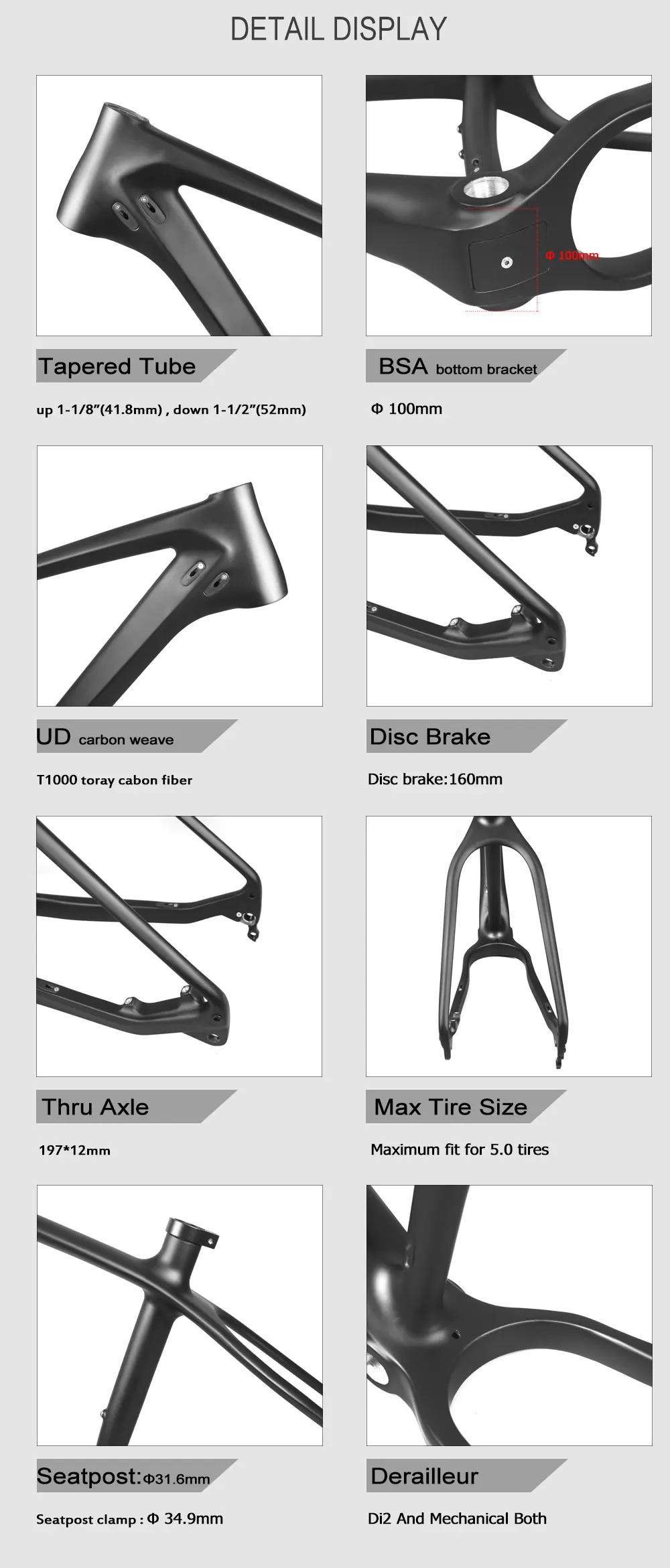 - Max Tire Size:26er*5.0 inch
