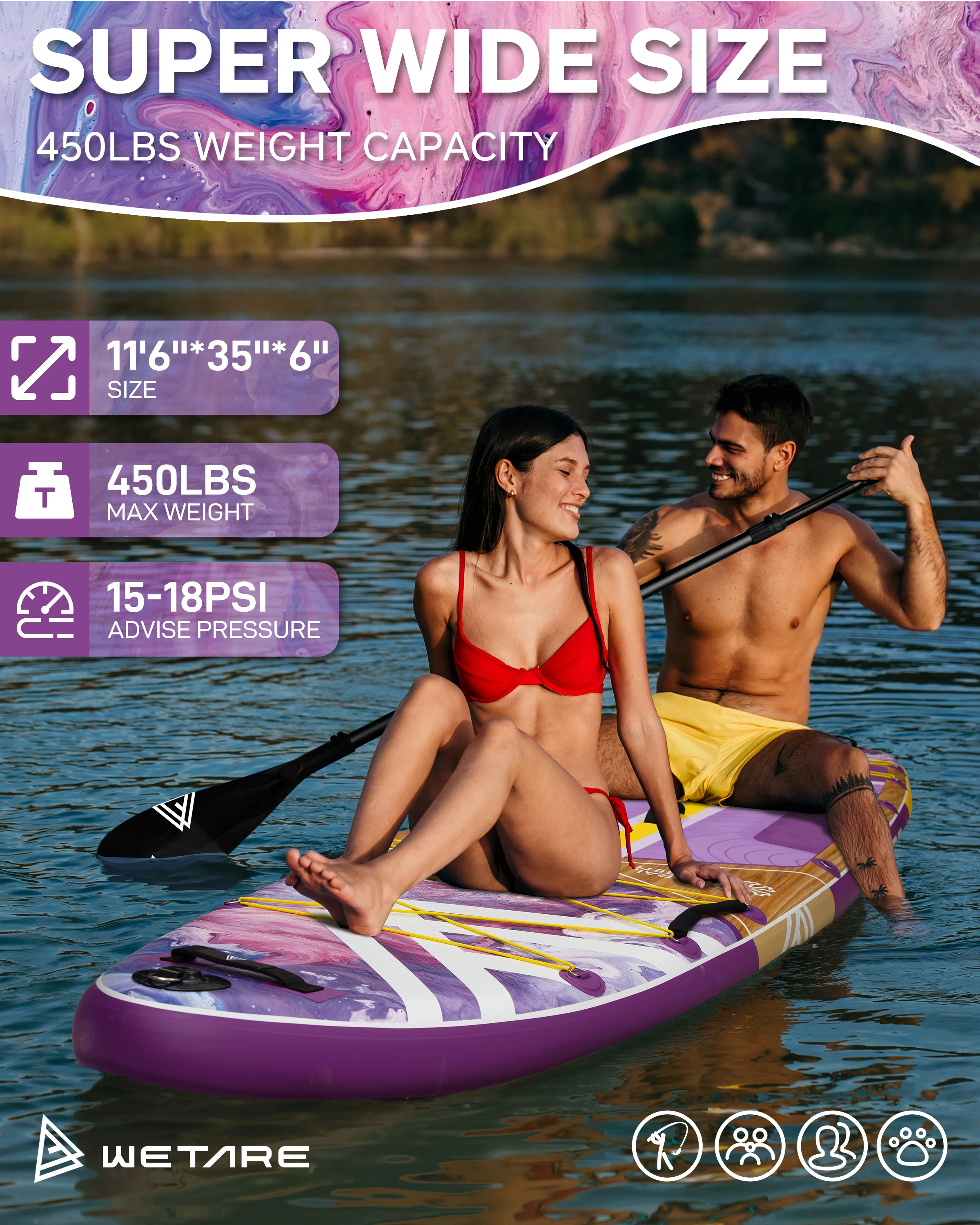 Myboat WETARE Водонепроницаемая очень широкая надувная доска для серфинга 11 футов 6 x 35 x 6 дюймов для взрослых стоячий стиль для водной рыбалки с аксессуарами