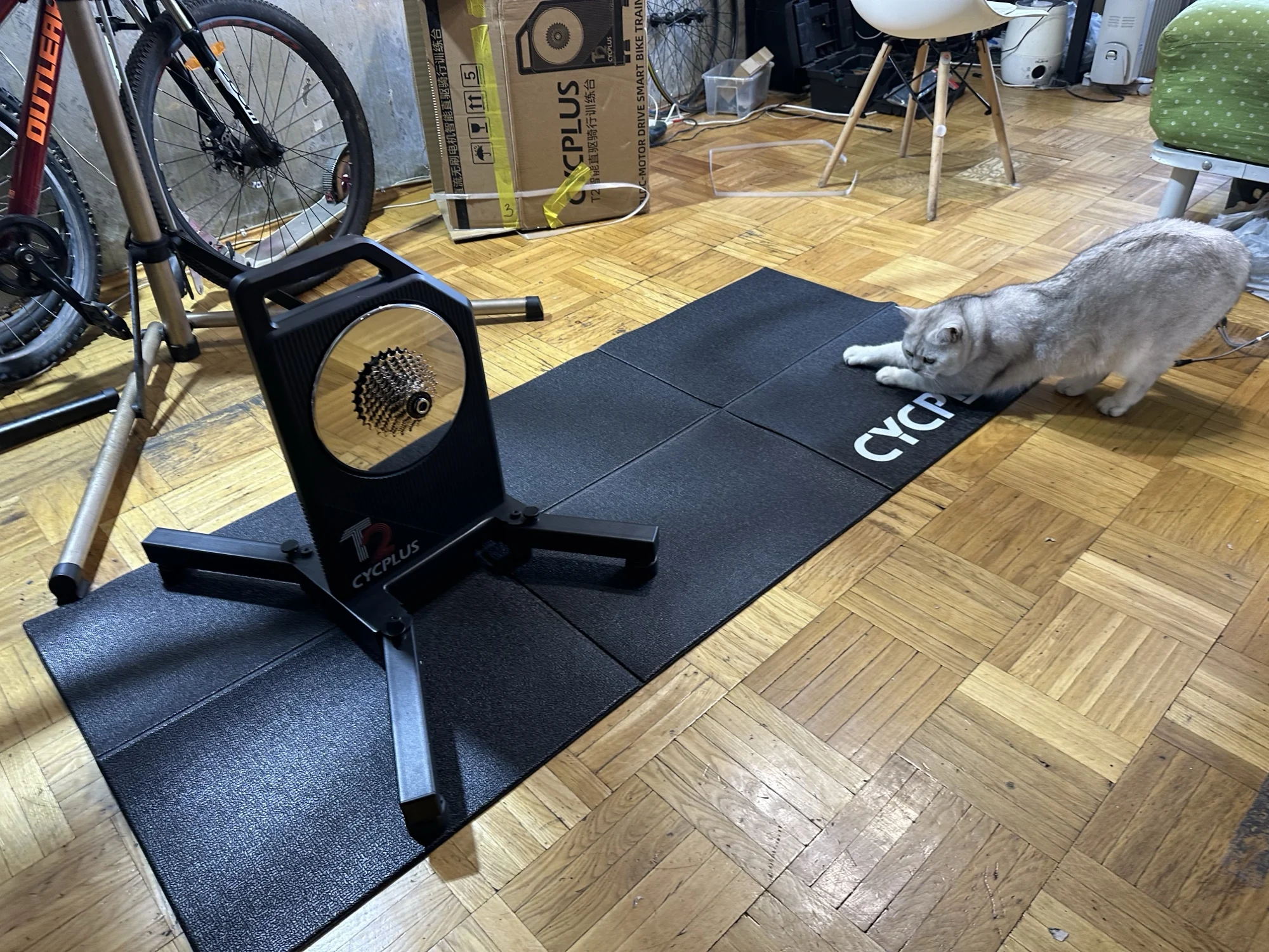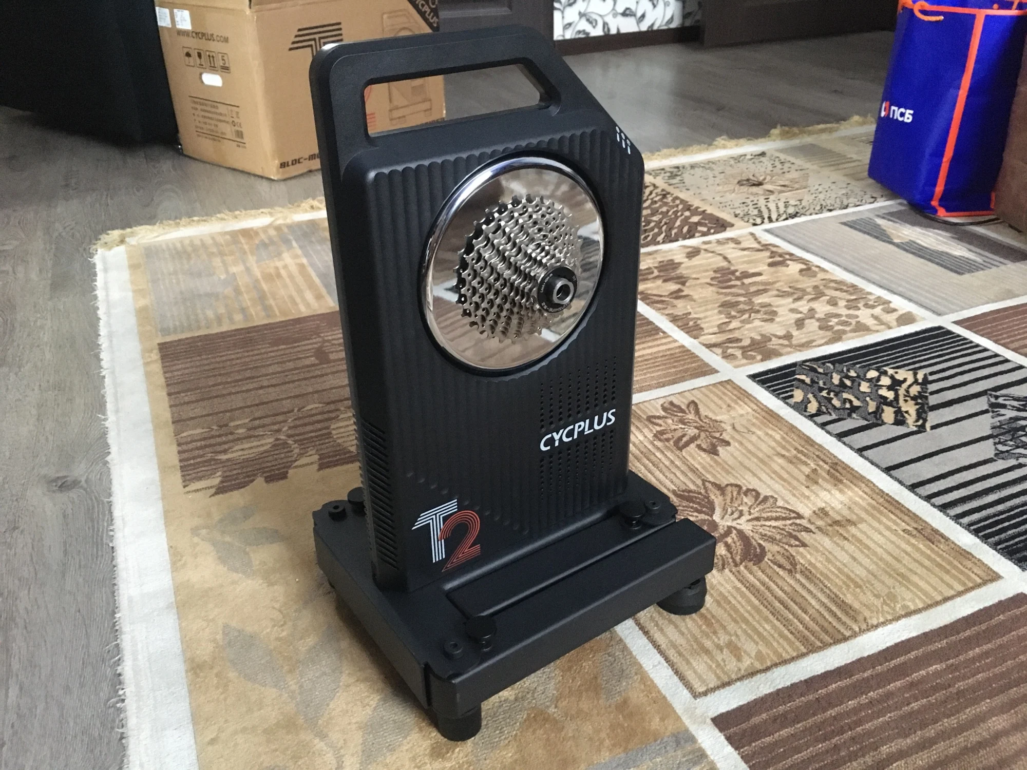 Станок пришел. Доставка курьером. Вел установил без проблемм (ось 142мм) Дисковый тормоз не мешается. Работает не шумно и даже без питания. Пока не понял, для чего в принципе подключать питание. Приложение для телефона cycplus практически бесполезное - только для обновления прошивки. Коврик (в комплекте) пока ставить не стал, но он тоже прикольный. Хотелось бы теперь найти какую-нибудь прогу для катания, жаль у фирмы производителя станка её нет, походу все они платные... Если кто-нибудь найдёт что-то интересное - пишите в отзывах.