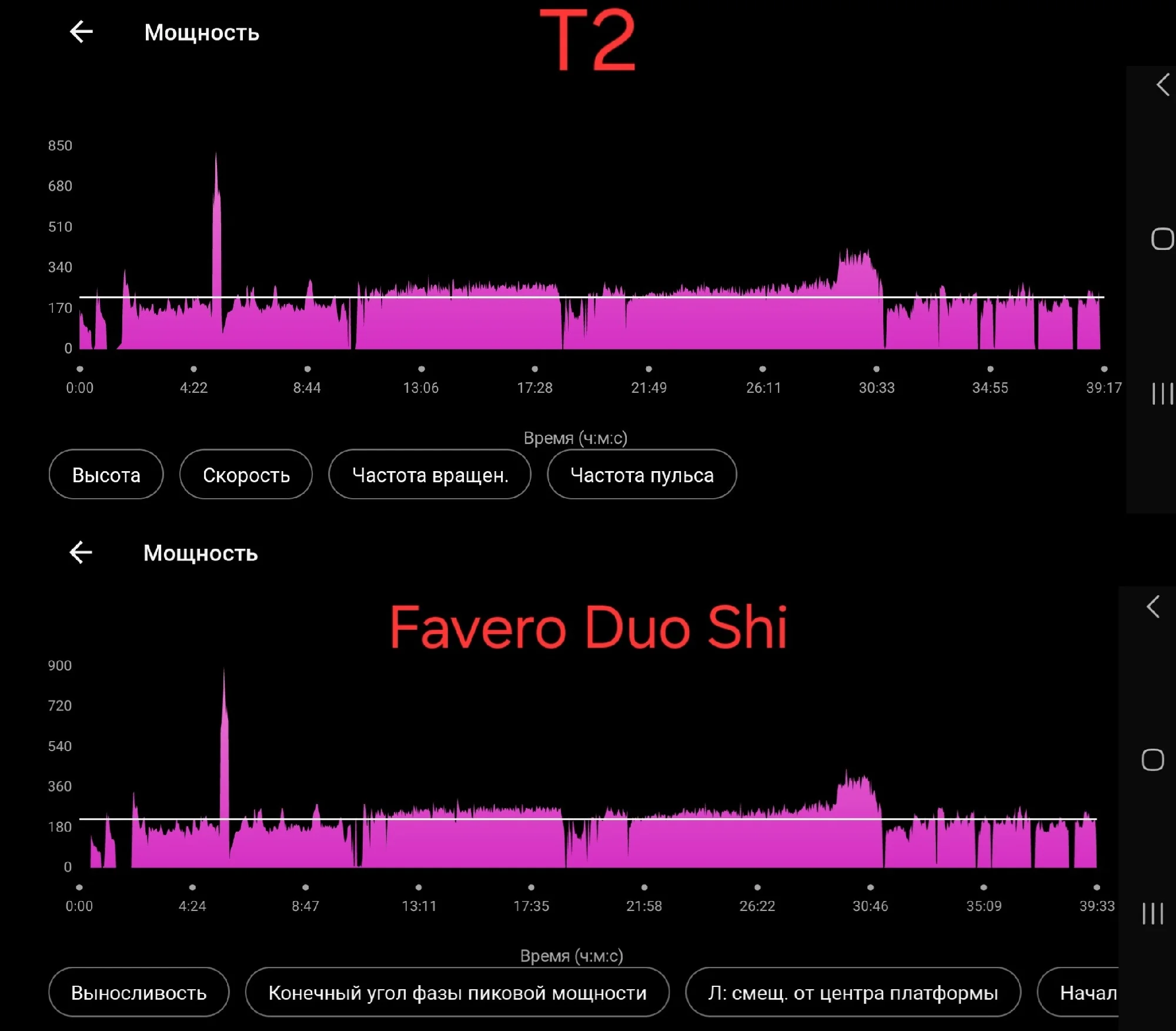 Отличная упаковка, можно с самолёта скидывать. Авиа бесплатная доставка сдэк до двери. Продавец молодец, таможенного платежа не было))) Купил за 38к. До этого был станок elite suito, умерли подшипники, 6 длинных сибирских зим отслужил. Т2 лучше, т.к. нет маховика, инерции на оборотах, он тише, он лучше стоит (устойчивее), ручка над центром тяжести, а не где попало, не греется. Сделал короткий заезд в звифте и сравнил мощемеры с Favero assioma duo, как на скринах видите все чётко. Спасибо!