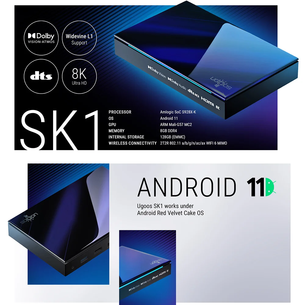 UGOOS SK1 TV BOX Amlogic S928X-K Android 11.0 LPDDR4 8G128G Supoprt Dolby...