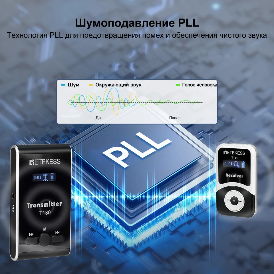 Динамик с технологией ФАПЧ улучшает шумоподавление за счет точной фиксации сигнала и динамической регулировки частоты, обеспечивая чистый звук в шумных местах, например на фабриках и во время экскурсий, гарантируя эффективную связь!