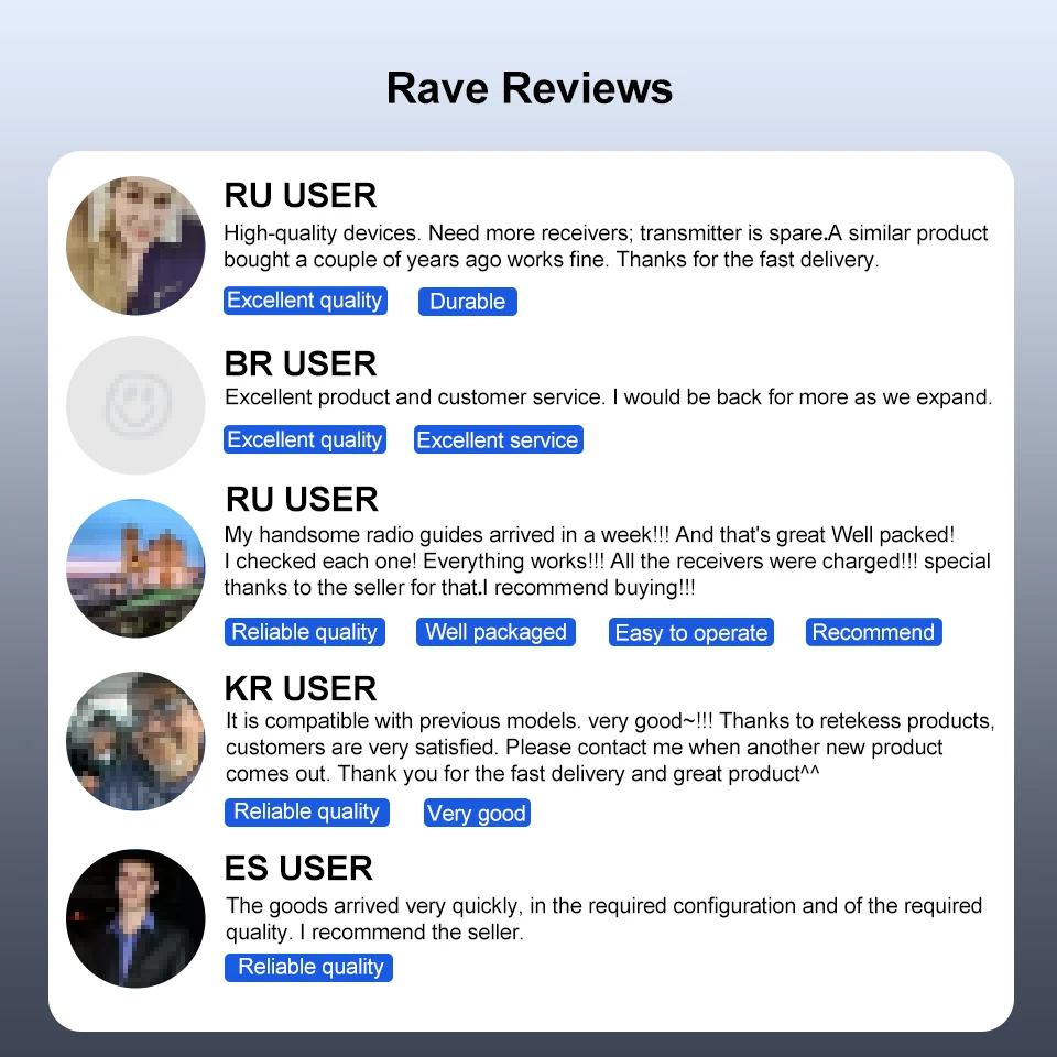 Компания RETEKESS работает в сфере устных переводчиков с 2008 года уже более 16 лет, повышая эффективность коммуникации для более чем 100 000 бизнес-групп, а ее деятельность охватывает 112 стран.