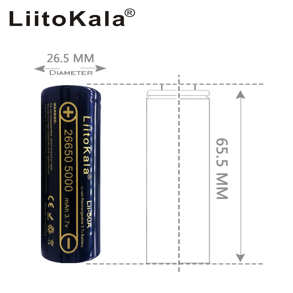 LiitoKala Lii-50A 26650 5000 мАч литиевая батарея