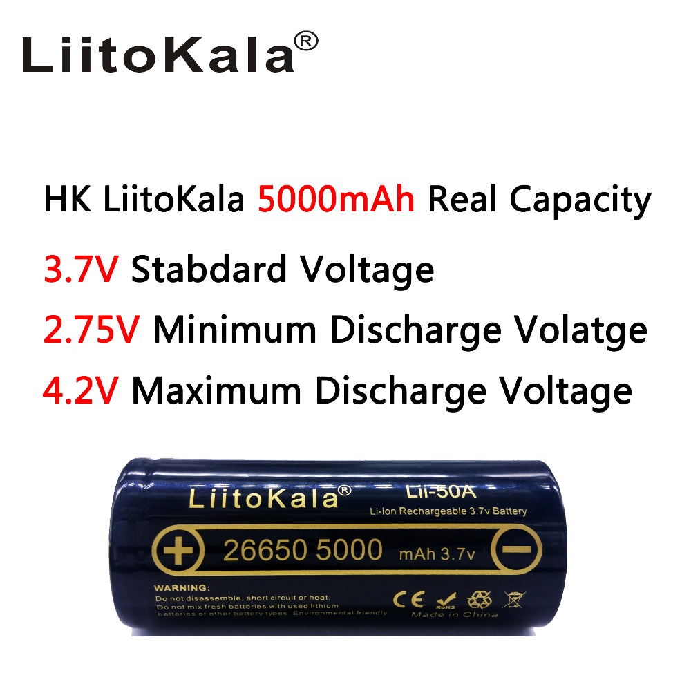 HK liitokala lii-50A 26650 5000 мАч литиевая батарея 3,7 в 5000 мАч 26650-50A...