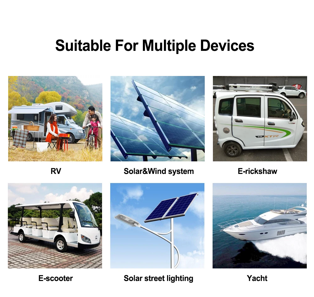 Двигатели, дома на колесах, кемпинг на открытом воздухе, ксеноновые лампы/прожекторы, инверторы, портативные устройства, оборудование беспроводной связи, оборудование наблюдения, электрооборудование, медицинское оборудование, спасательное оборудование, аварийное освещение/светодиодные фонари, дорожные знаки, портативная мелкая бытовая техника, электрические инструменты, резервное питание автомобильного и промышленного оборудования и т. д.