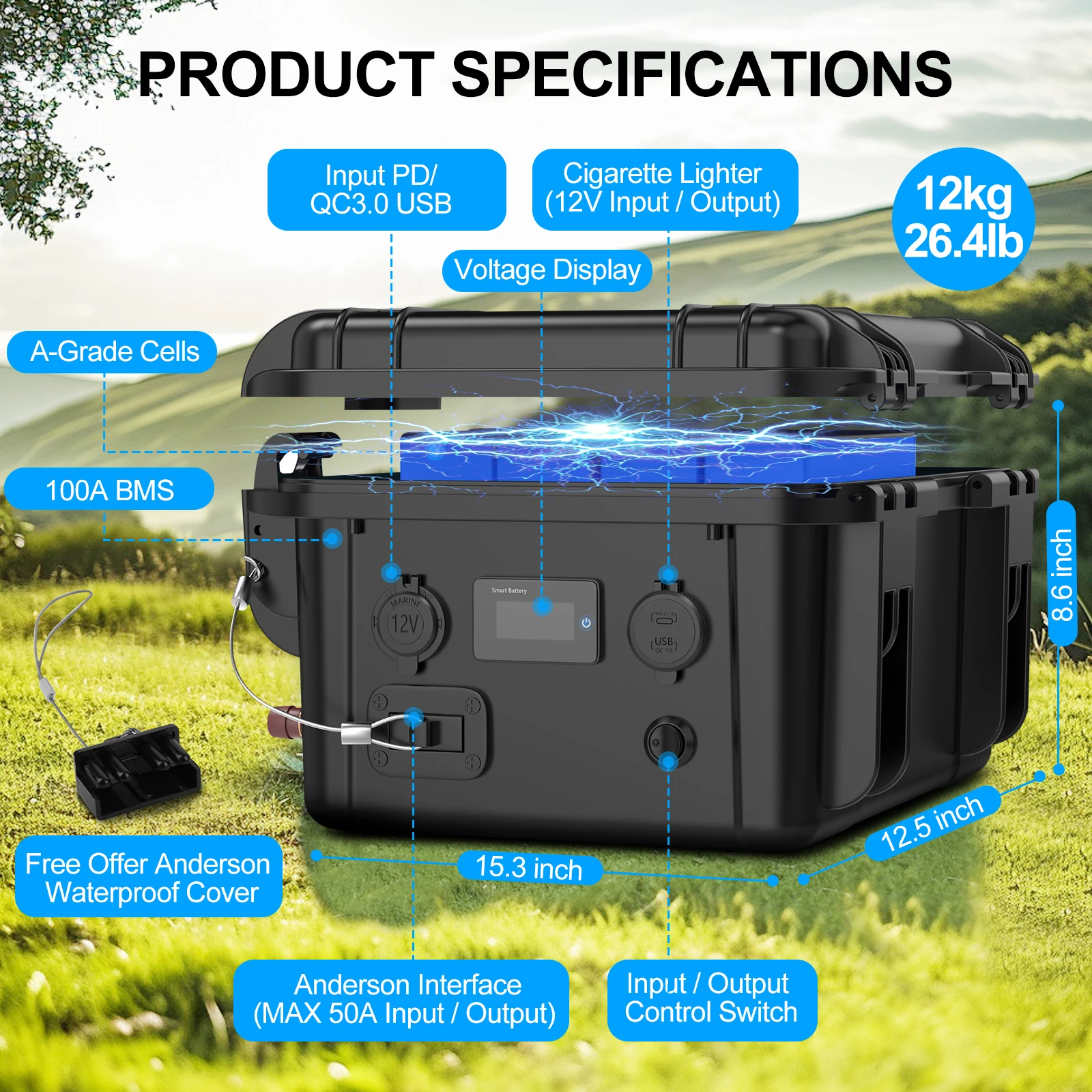 1.Аккумулятор LiFePo4 высокой емкости 12 В, 100 300 Ач, встроенный BMS, водонепроницаемый чехол из полипропилена с защитой от падения,