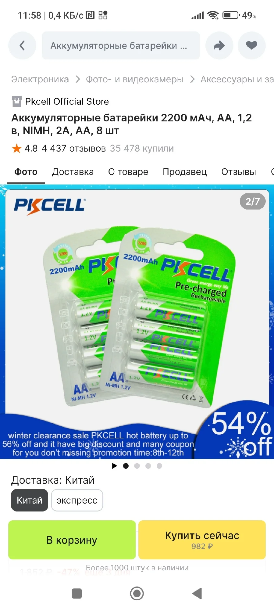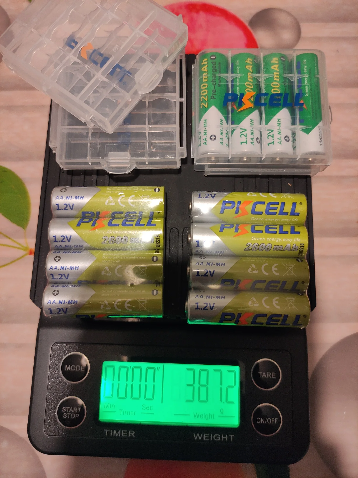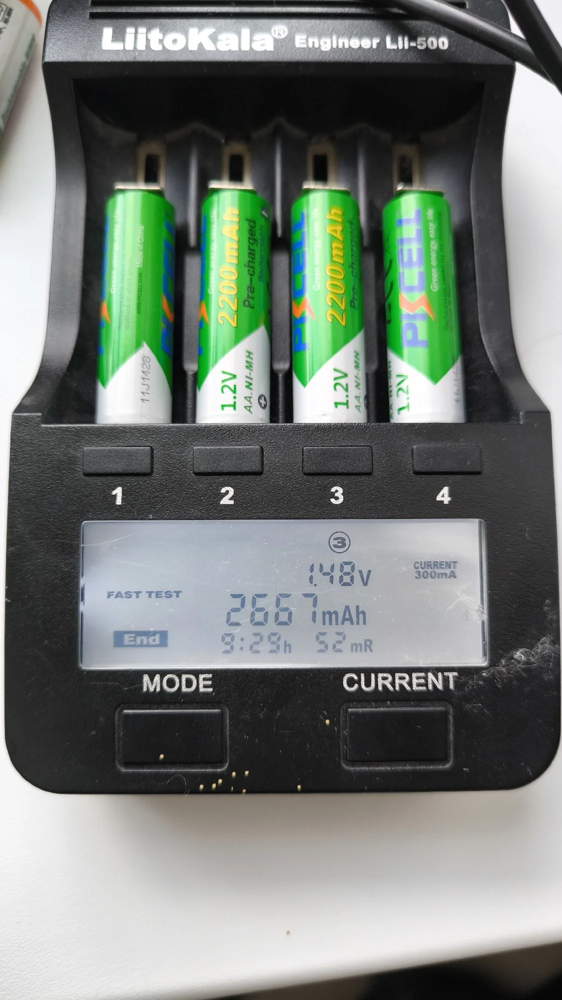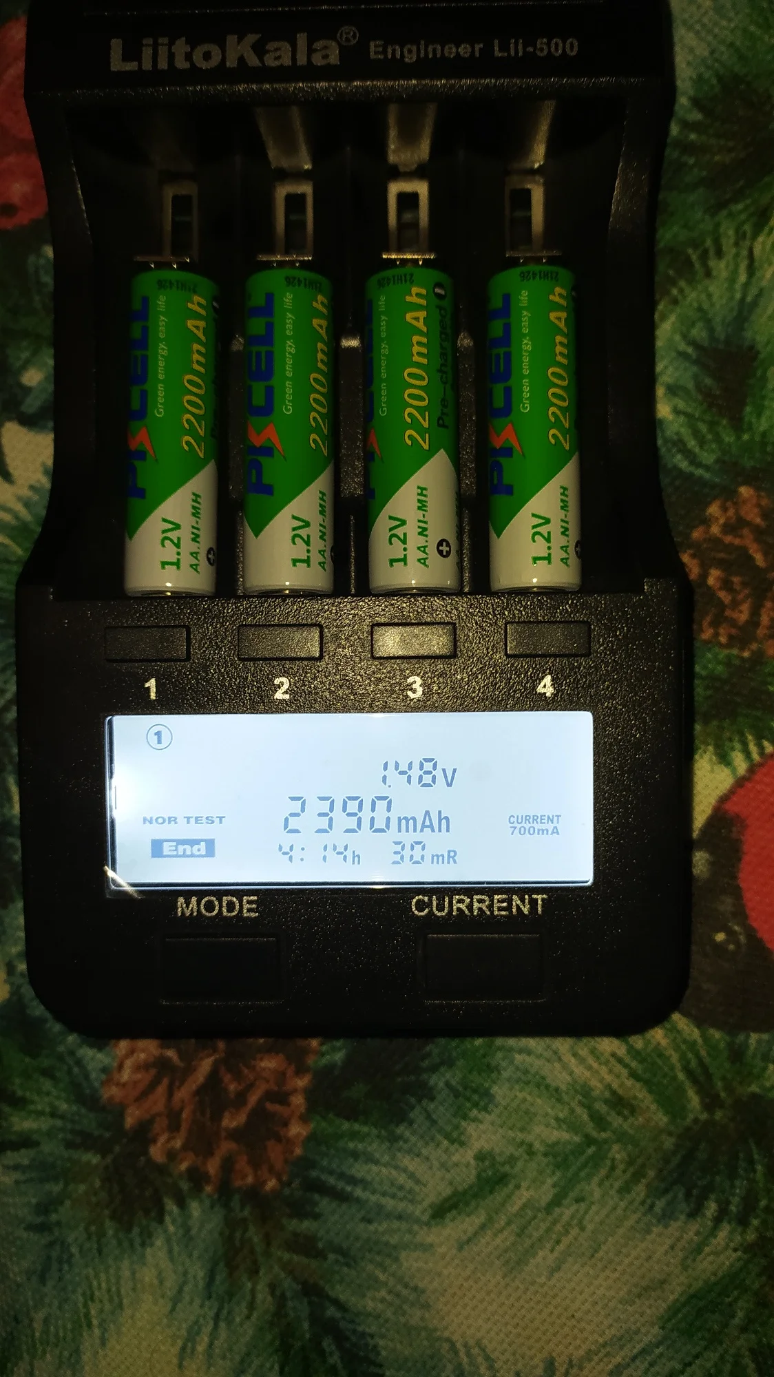 PKCELL перезаряжаемый Ni-Mh аккумулятор AA 1.2V 2200 mAh. магазин PKCELL Official Store В комплекте 1. Ni-Mh Pkcell аккумулятор AA 1.2 Вольт - 4 шт. 2. пластиковый контейнер для хранения аккумуляторов - 1 шт. 3. Ni-Mh Pkcell аккумулятор AA 1.2 Вольт - 4 шт. 4. пластиковый контейнер для хранения аккумуляторов - 1 шт. Маркировка на аккумуляторе PKCELL NI-MH 2200 mAh 1.2V Rechargeable NI-MH – никель-металл-гидридный аккумулятор Вес комплекта 4 аккумуляторов: 110 гр. Размер аккумулятора: 14 x 50 мм. Протестировал в LiitoKala 500 ёмкость по результатам теста NOR Test 8 аккумуляторов 1. 2396 mAh 2. 2501 mAh 3. 2511 mAh 4. 2502 mAh 5. 2413 mAh 6. 2451 mAh 7. 2481 mAh 8. 2486 mAh Емкость выше заявленной 2200 mAh Дата производства указана на упаковке жёлтого пакета 2020 год. На самих аккумуляторах нет информации о дате производства. Доставка 8 дней с российского склада в пункт выдачи Упаковано в пакет и внутри 2 жёлтых пакета с пузырчатой пленкой