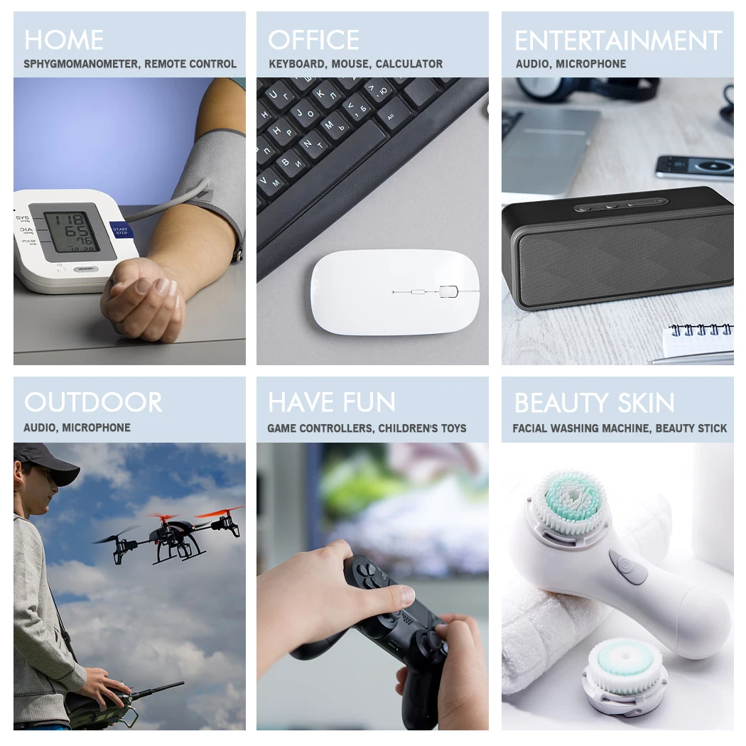 Применение: цифровая камера, портативное видео, игра, фонарик, пульт дистанционного управления, игрушка, MP3/MP4-плеер, электрическая бритва и т. д.