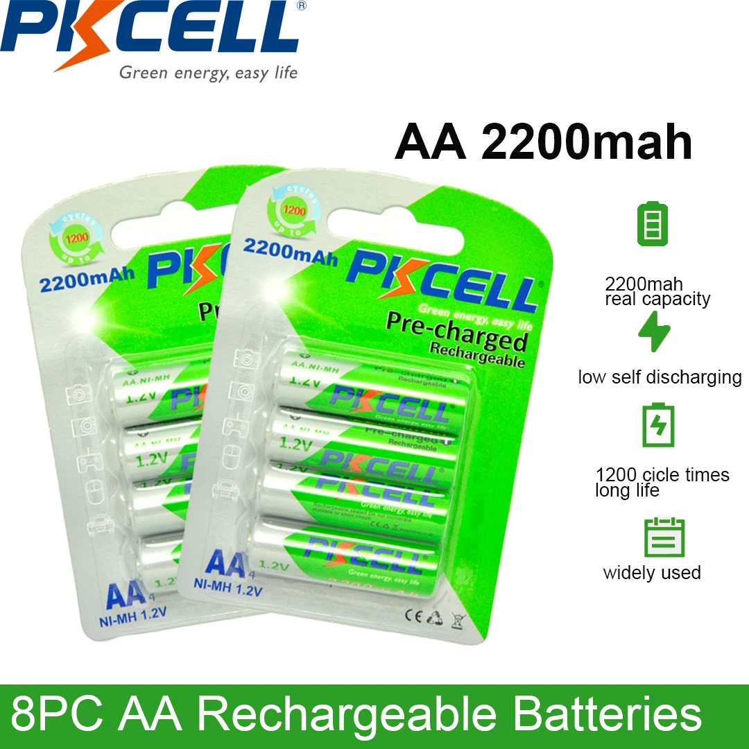 8 шт./2 карты PKCELL AA Аккумуляторная батарея AA NiMH В 1,2 в 2200 мАч Ni-MH...
