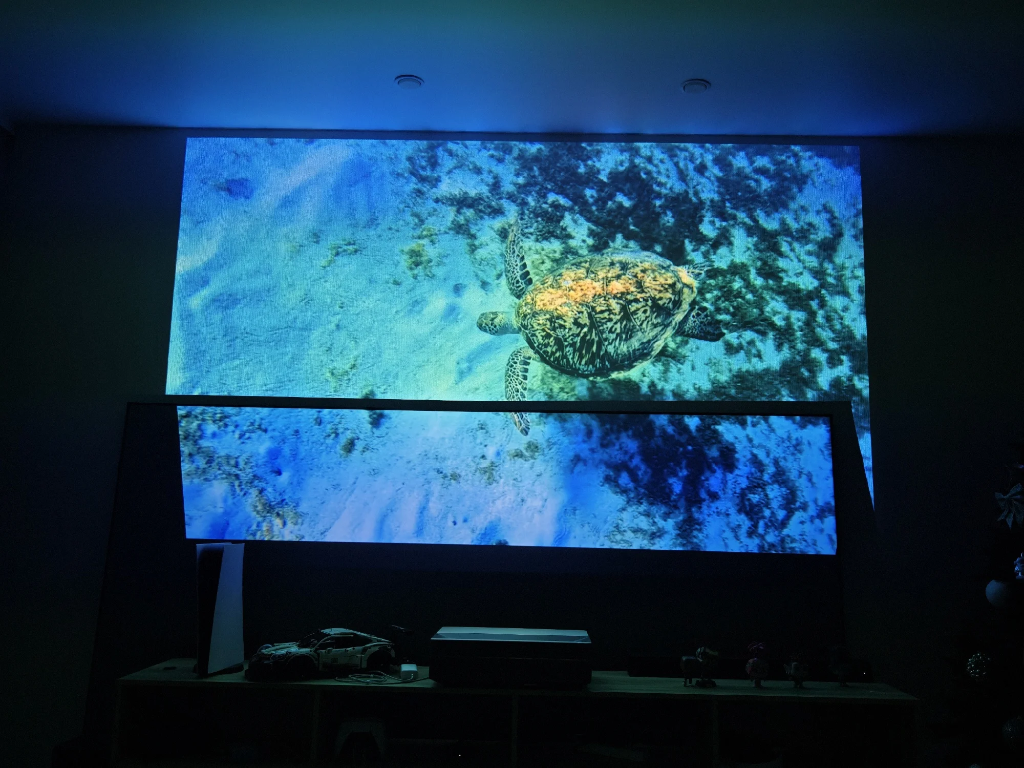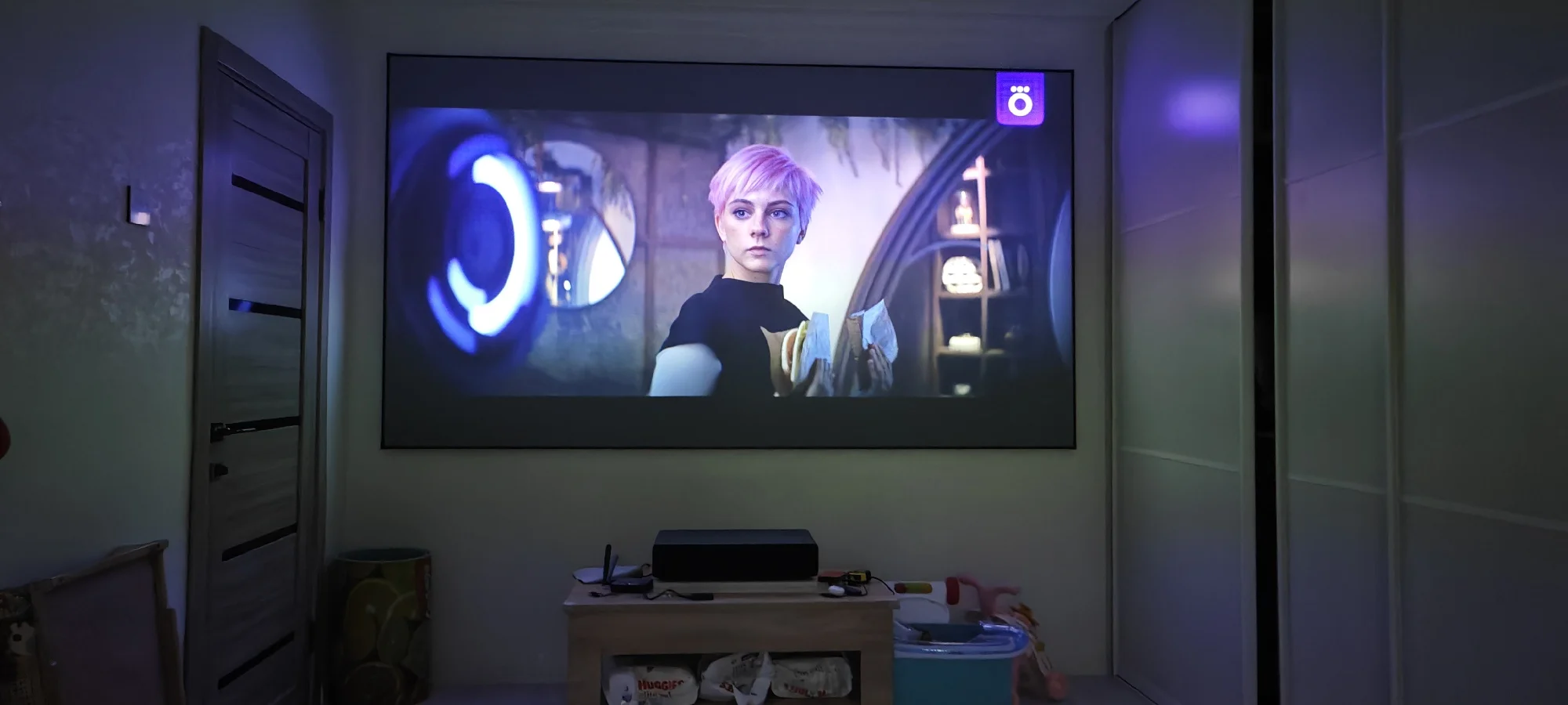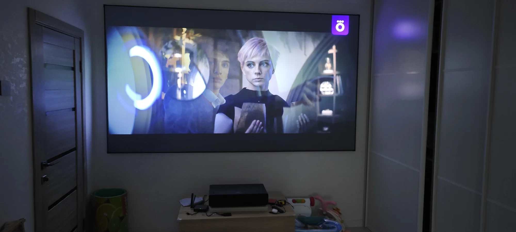Чтобы обеспечить наилучшее качество изображения, намного лучше, чем белая стена или обычный белый экран без UST, даже в дневное время или в освещенной комнате.