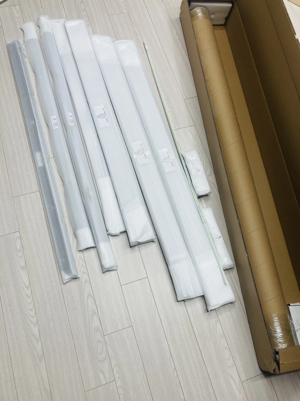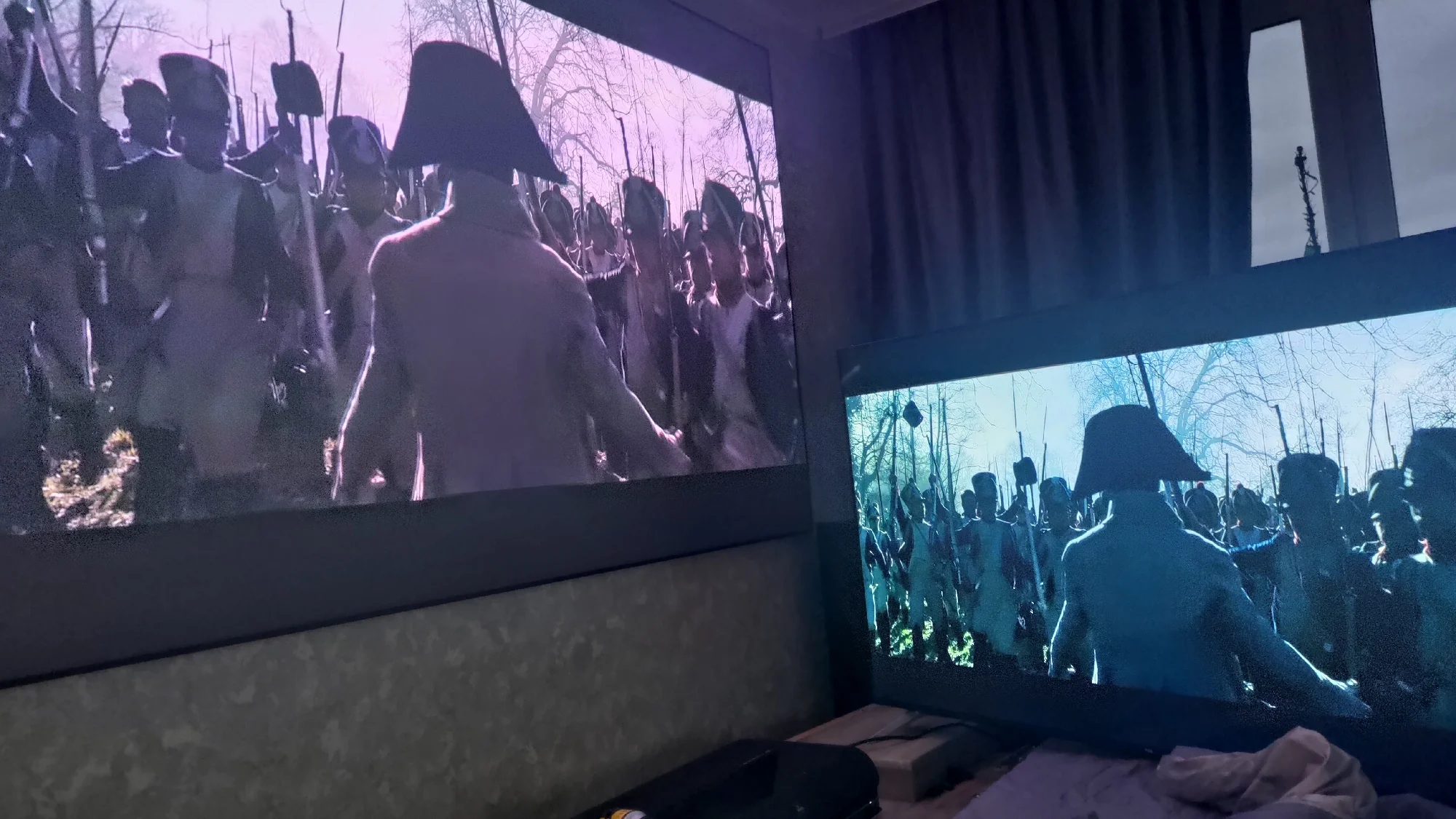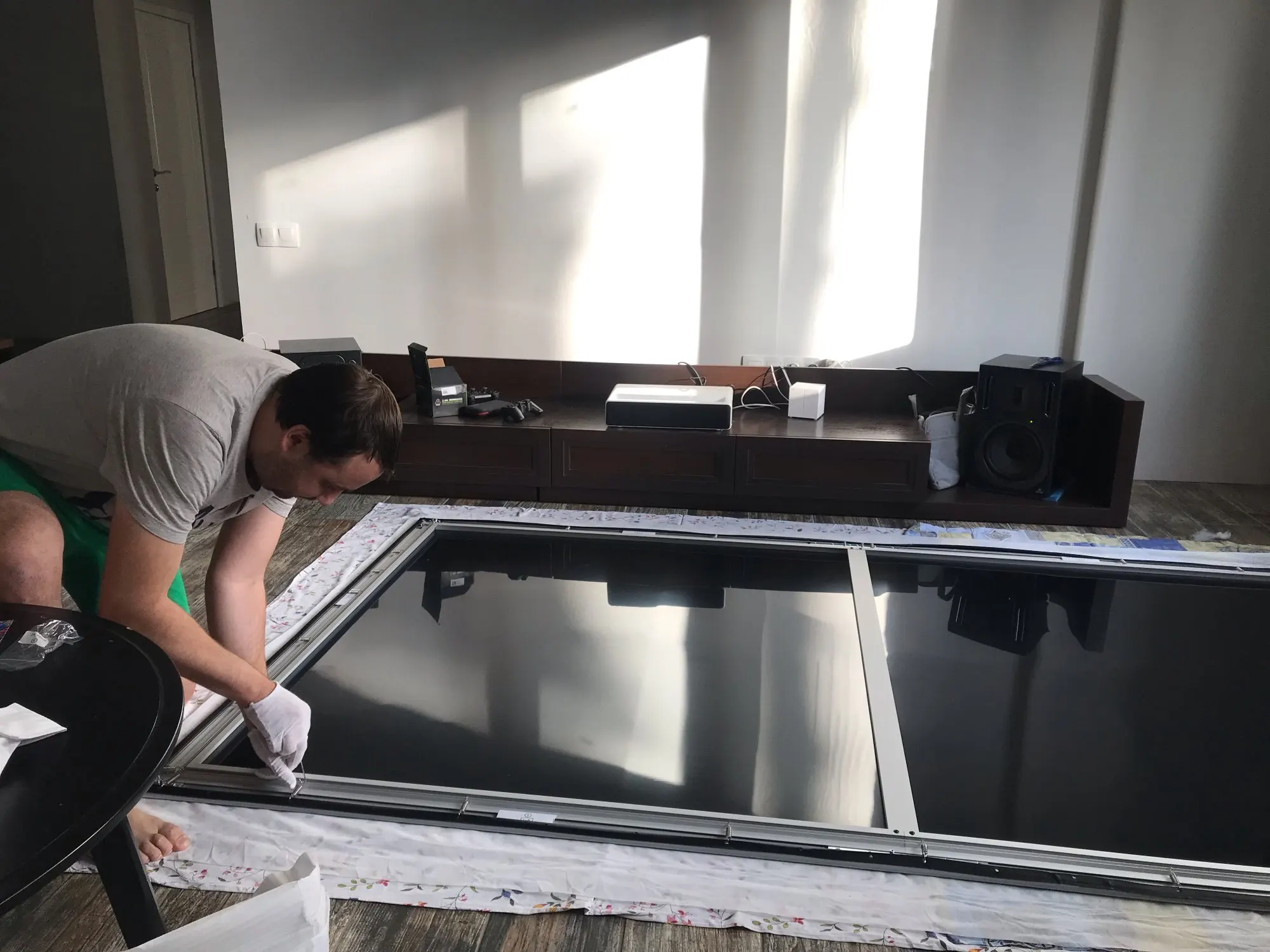 Экран до Чебоксар доставили за 3 недели. Упакован надежно, всё цело, хотя наружняя коробка была повреждена. Сборка достаточно простая, для этого всё есть в комплекте, включая руководство, отвертки, перчатки и даже поролон, чтобы подстелить на пол под ткань экрана, элементы рамы подписаны. Для установки даже есть маленький уровень. Возможно в руководство не помешало бы добавить, что при сборке надо проконтролировать диагонали экрана и его плоскость, т.к. были небольшие расхождения, что для короткофокусного проектора важно. Сравнительно фото на белой стене и на ALR-экране ниже. В целом контрастность изображения стало лучше. Для большего эффекта нужен проектор помощнее, мой Formovie R1 Nano с заявленными 1200 ANSI люмен слабоват для дневного просмотра на 100 дюймов, днем максимум 40" при покрытых тюлью окнах, вечером с комнатным освещением норм. Продавца рекомендую, на мои первоначальные вопросы и уточнения отвечал быстро и терпеливо, отправил посылку быстро.Dima P. 11 апреля 2023