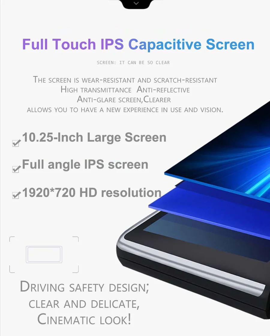 Тип сенсорного экрана: 1920*720 синий светильник, защита от ослепления, защита от отпечатков пальцев, защита от царапин, процесс полного ламинирования, емкостный сенсорный экран, поддержка мультитач