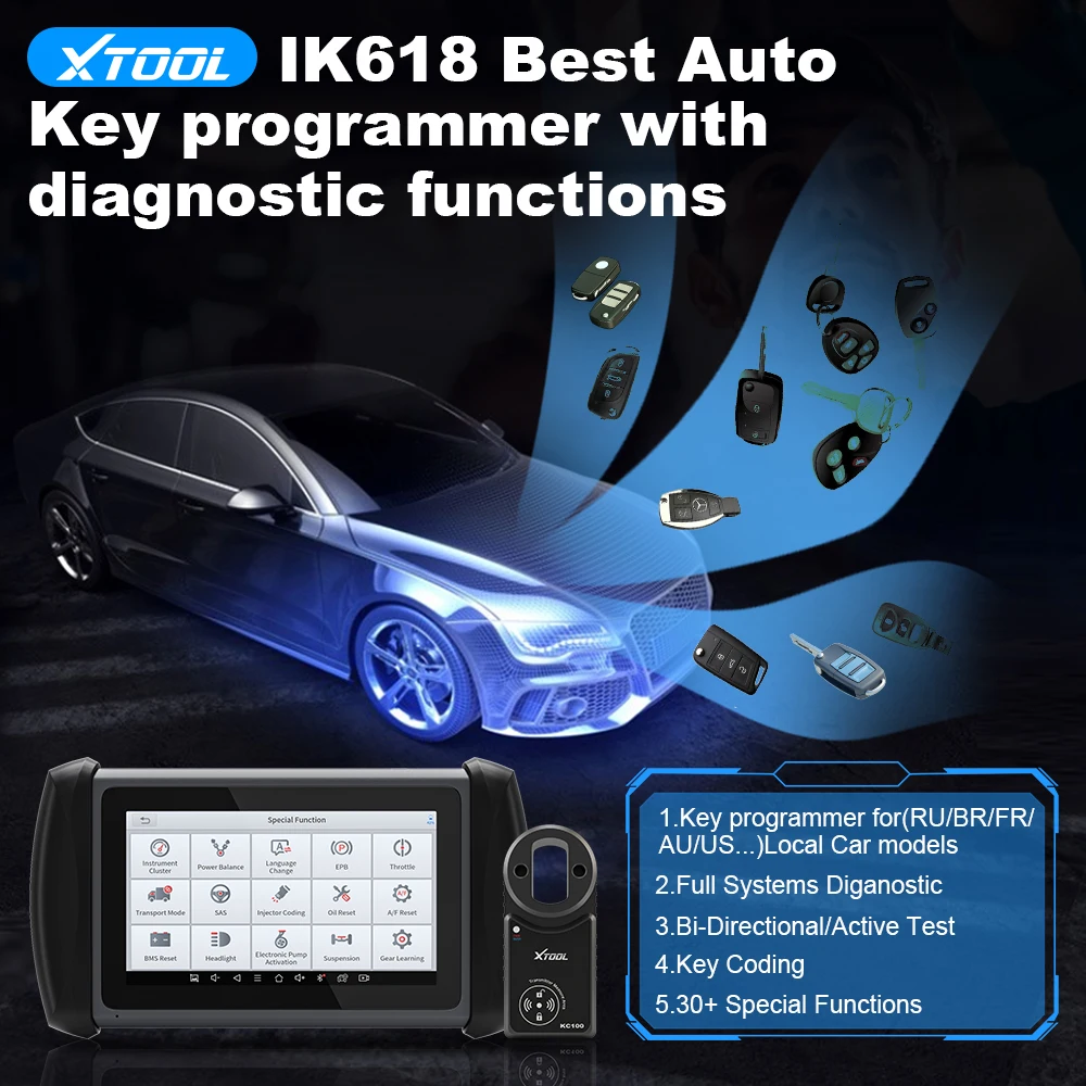 XTOOL IK618-это профессиональный инструмент программирования автомобильных ключей, который может выполнять профессиональное программирование ключей и функции IMMO, как показано ниже: